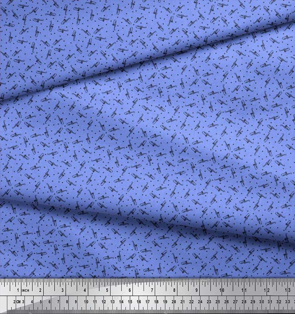 Soimoi Синяя вискозная ткань с рисунком треугольника и музыкального инструмента саксофона, декоративная ткань с принтом BTY 42 дюйма