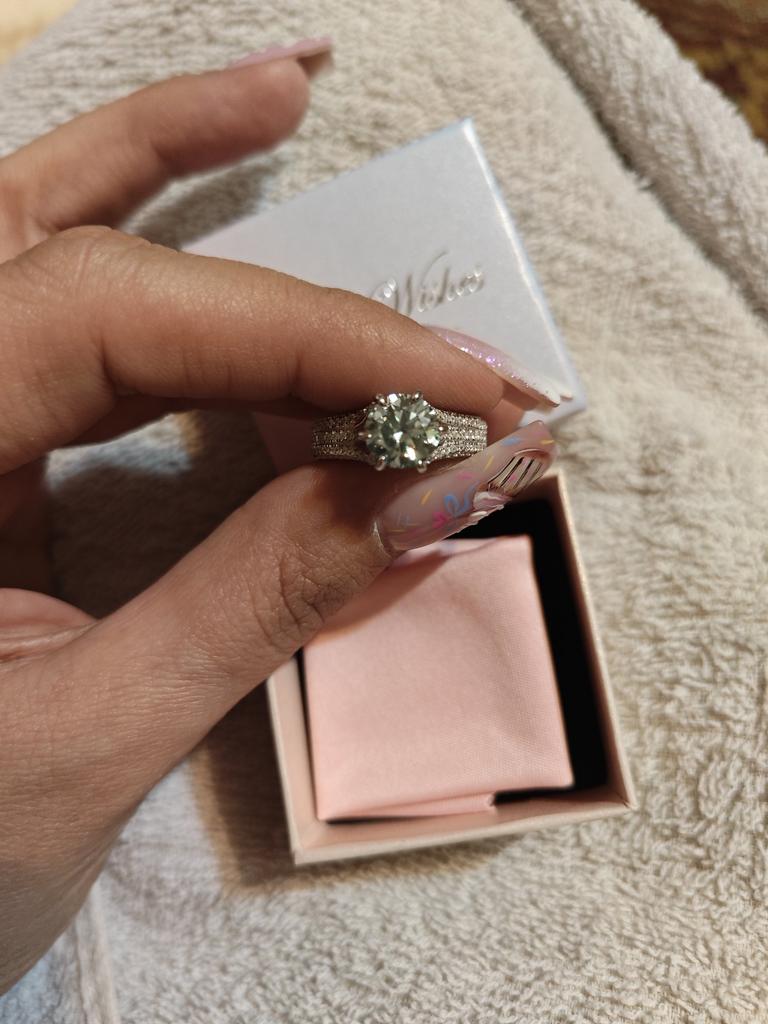 Е-мае,кольцо ещё подешевело,обидно чес.слово,ну да ладно,брала спец.2 карата что бы косил под бриллиант,больше карат уже перебор,красиво...шинка широкая,кольцо конкретное,сверкает как соплями намазаное,сертификат есть,я конечно не видела 2каратный бриллиант,но мне кажется что брюлик благороднее,а вообще очень красивое.РекомендуюЧто то видео не получается с этим китайцем,с Самсунгом было проще попробую ещё раз..