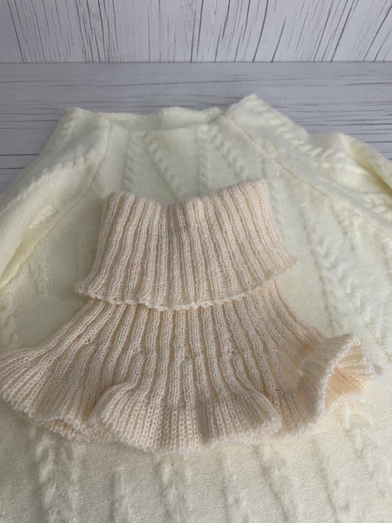 Воротником его можно назвать с натяжкой 😂. Воротничек, да🤣. Небольшой, хлипковат, но хорошо тянется, не давит, в принципе мне комфортно😃. Мягкий, не колется. Конечно, на корпулентных дам брать не советую. Для ребенка или для маленьких барышень, как я 😜. Купила за 160 рублей. Сделала фото на фоне ладони, показать, какой он небольшой. Да и с цветом тоже вопрос? Нитки не однородного цвета, есть какие-то вкрапления👐 Заказала бежевый, он и пришел, но видимо бежевого цвета существует много оттенков😅. Сделала фото на фоне бежевого свитера, разница видна, но в принципе не критично для меня. Но звезду сняла!👆 Поносив, была приятно удивлена!!! В нем тепло, не продувает, а когда жарко, не колется и чувствуешь себя комфортно👍 Буду покупать еще и в другой расцветке. Возможно даже парочку🌸 ОДНОЗНАЧНО РЕКОМЕНДУЮ!!!