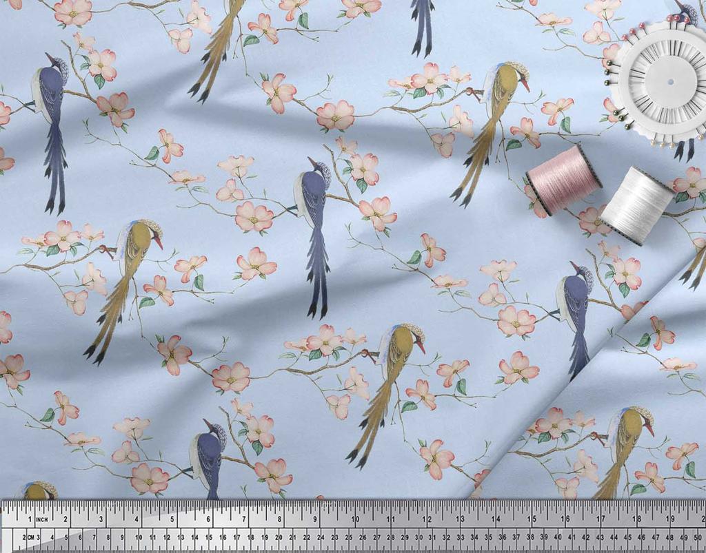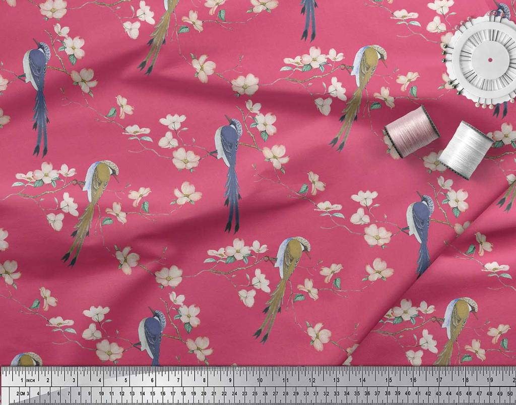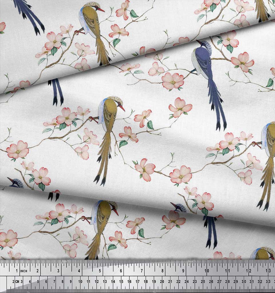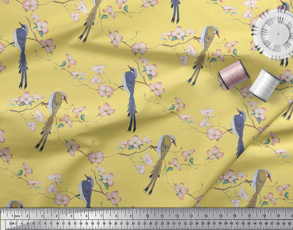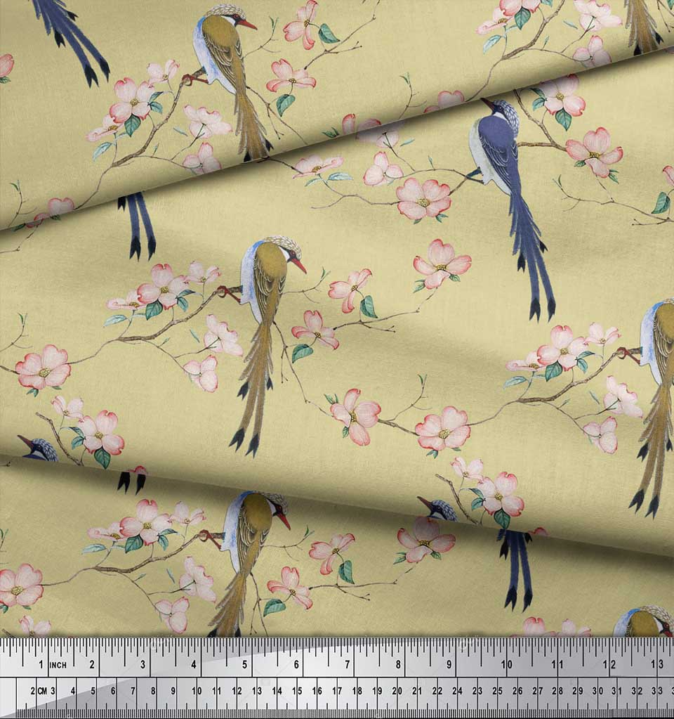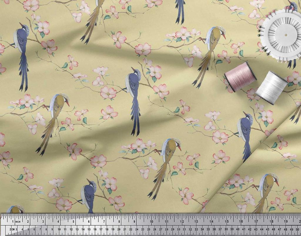 Soimoi Ткань из бежевого поликрепа с принтом Blossom & Paradise Whydah Bird, ткань для рукоделия, по метрам, 42 дюйма