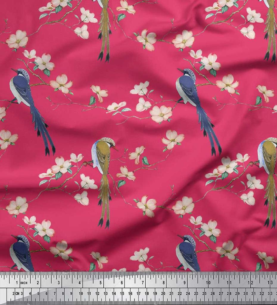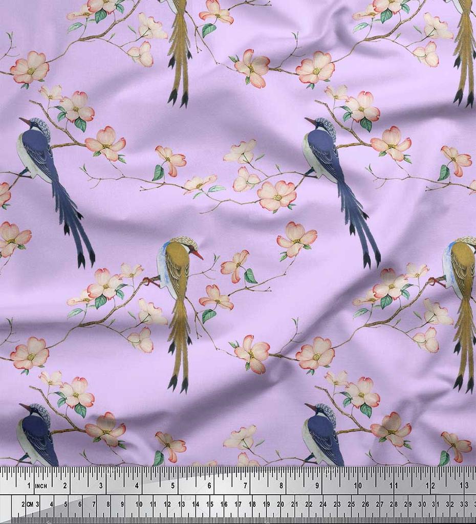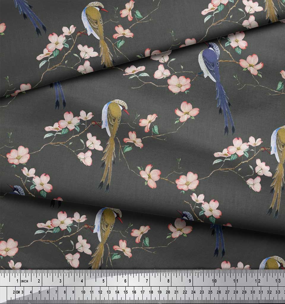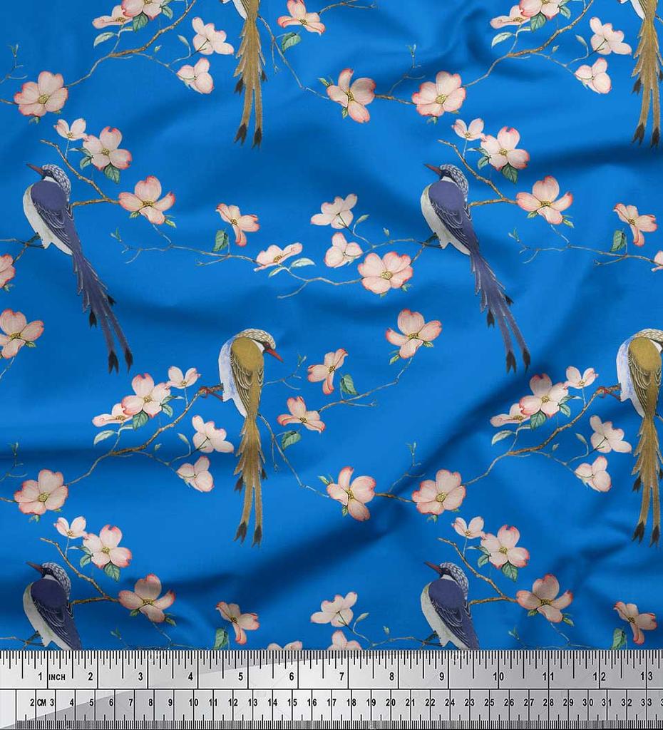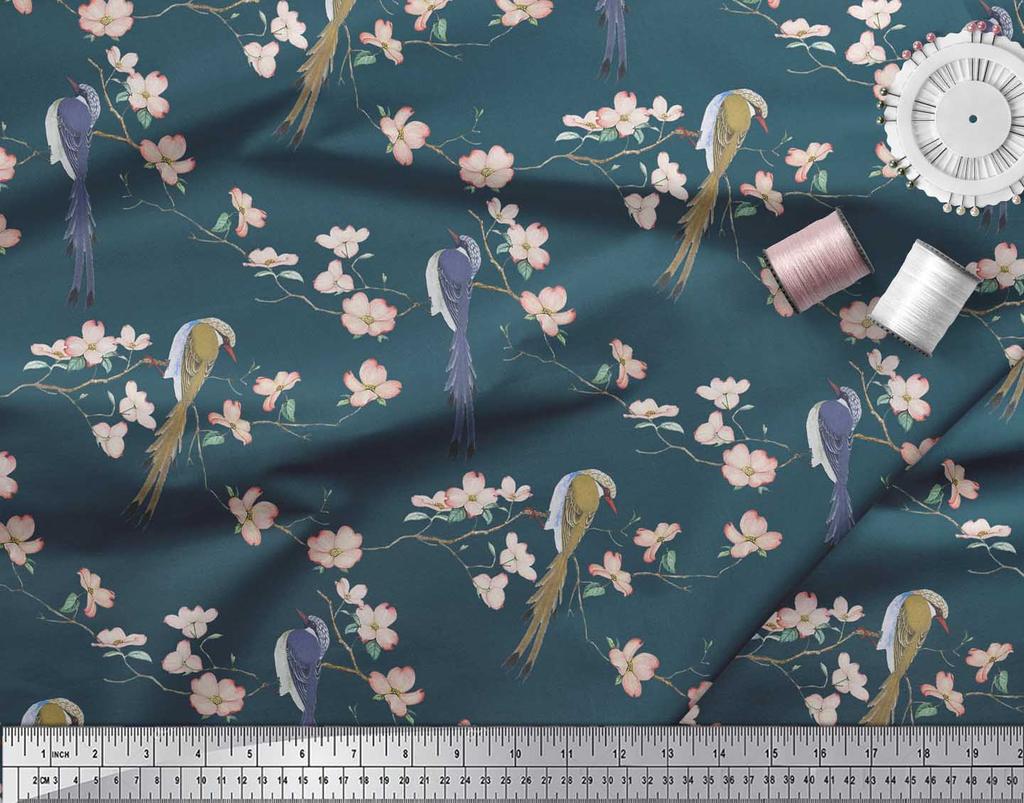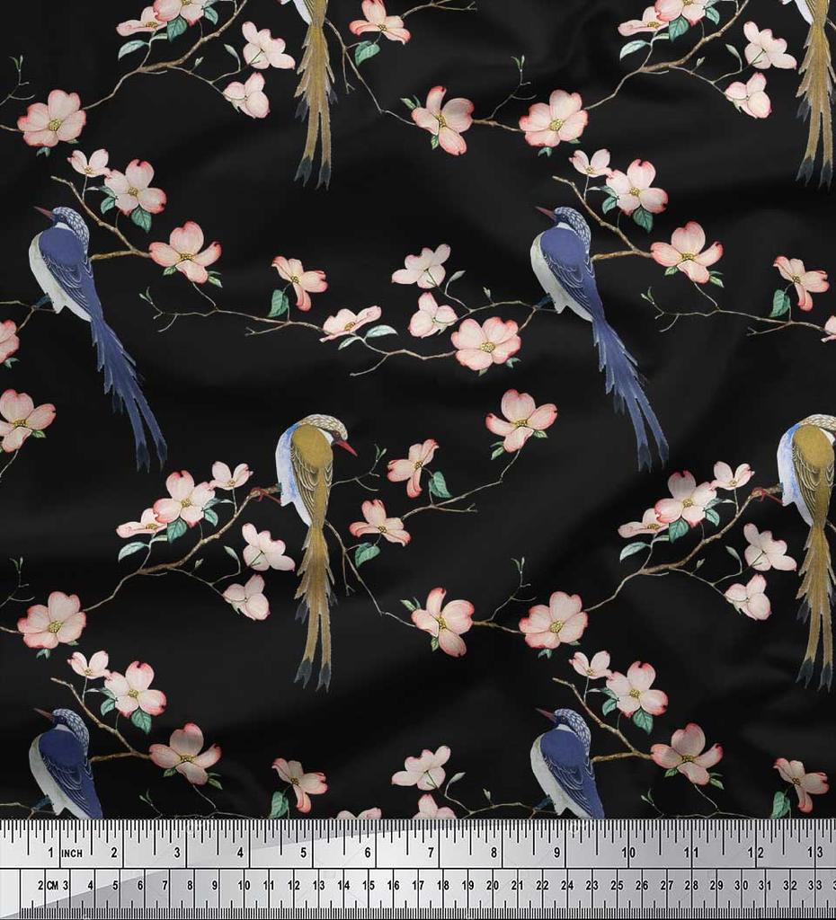 Soimoi Ткань из бежевого поликрепа с принтом Blossom & Paradise Whydah Bird, ткань для рукоделия, по метрам, 42 дюйма