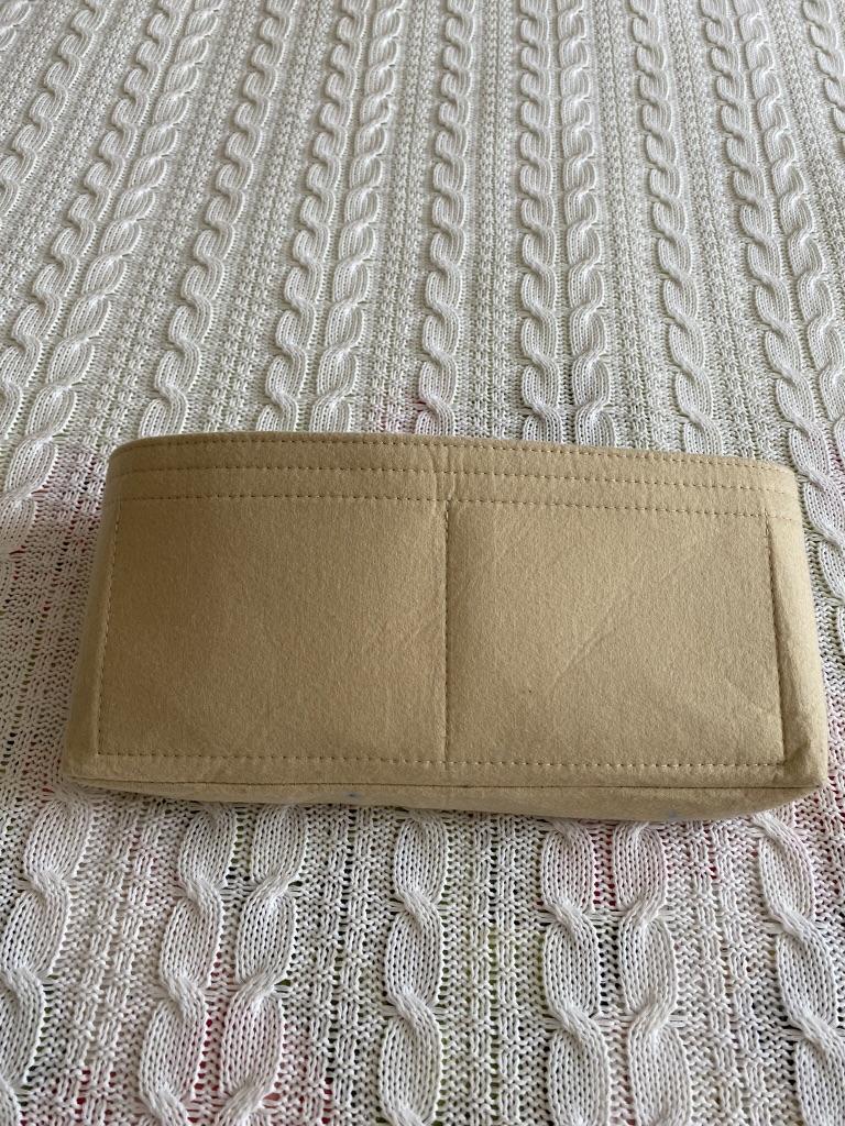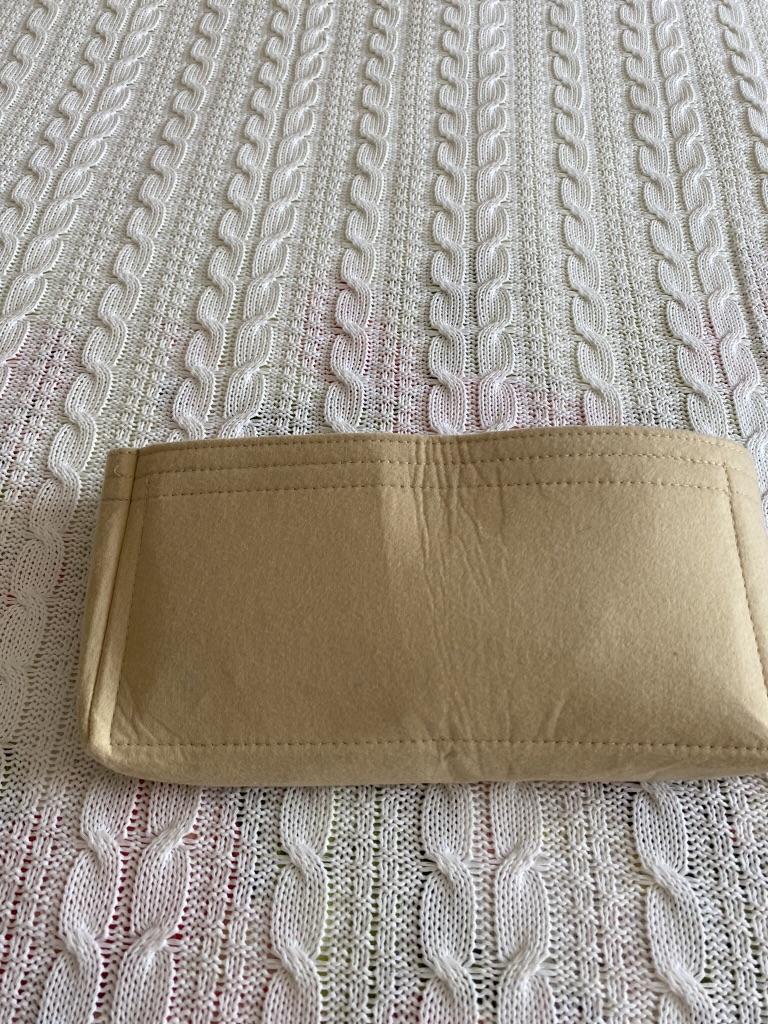 Вкладыш меньше, чем заявлено. 24.5 см это в расплющенном виде по верхнему краю. В форме сумочки максимум 22 см донышко от шва до шва. В мою сумку мала, болтается там сама по себе. К пошиву претензий нет, аккуратно, много кармашков, карман на молнии. Но зачем мухлевать с реальными размерами?! Кому-то нужно именно не более 22 по донышку, а не купят, так как указано 24.5.