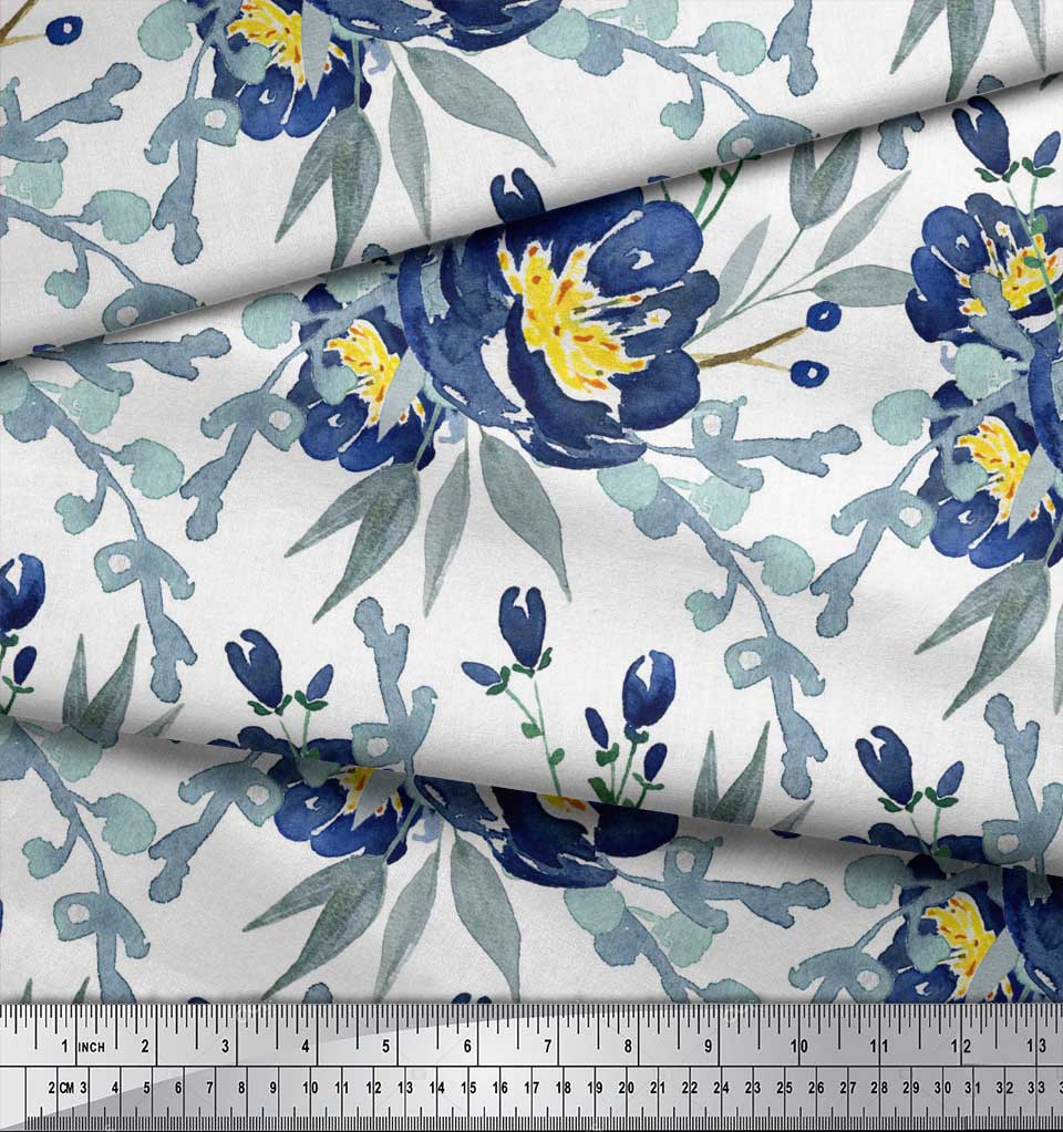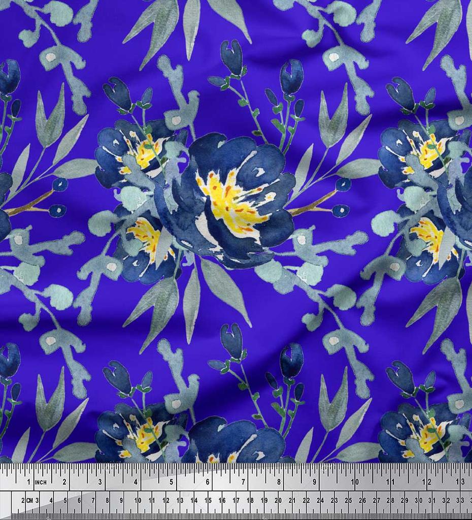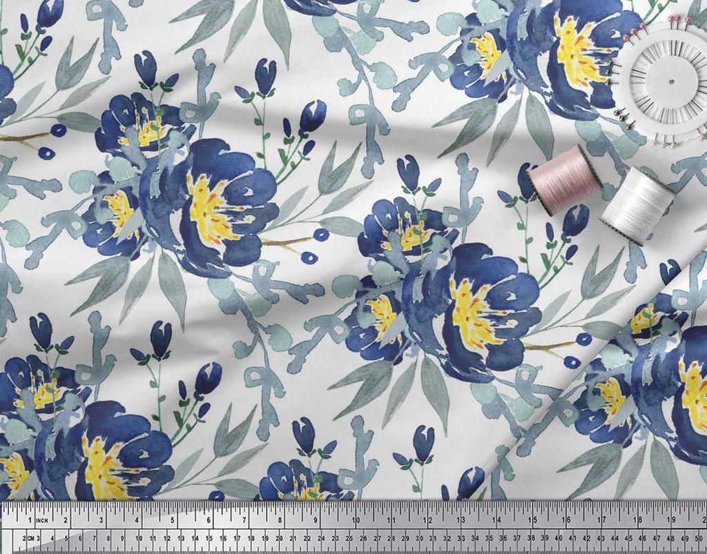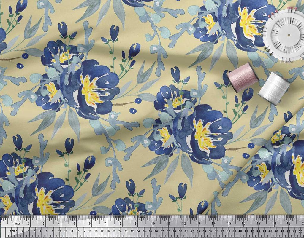 Soimoi Бежевая полиэфирная креповая ткань с листьями и пионом с цветочным принтом, 42 дюйма по метрам