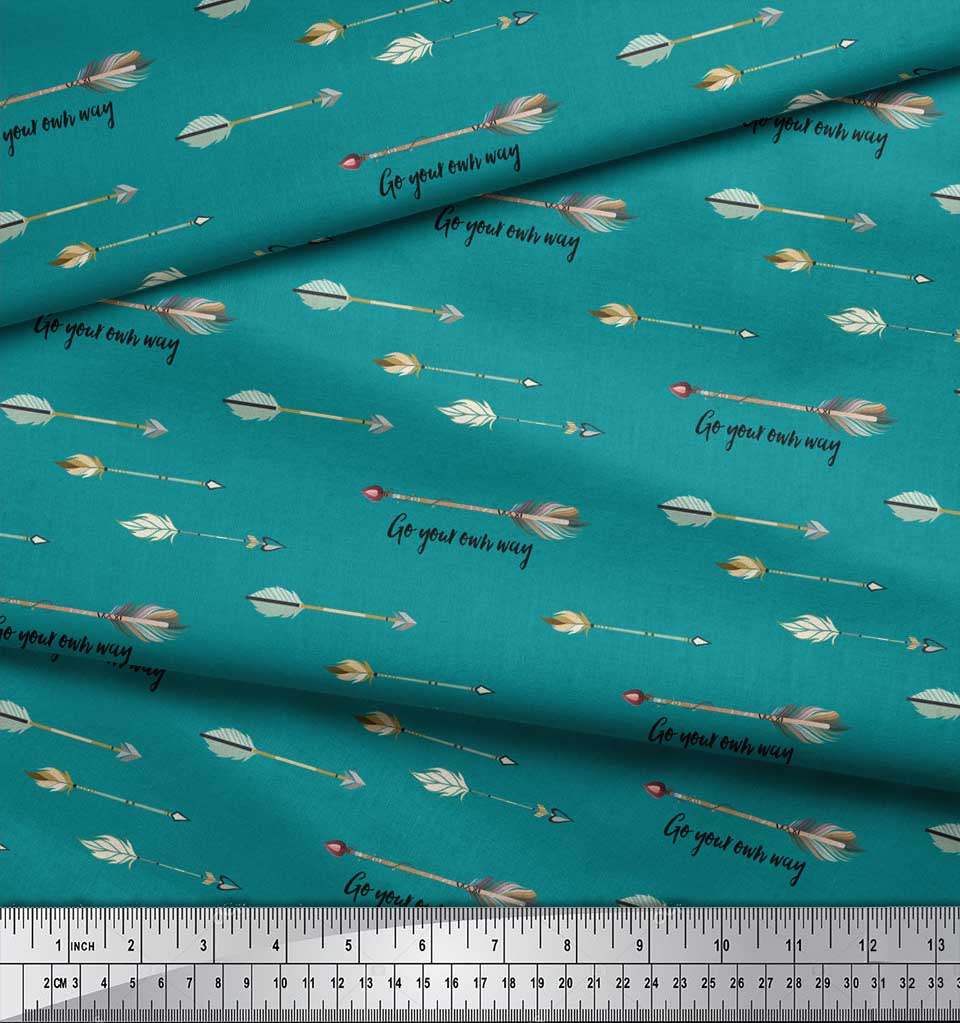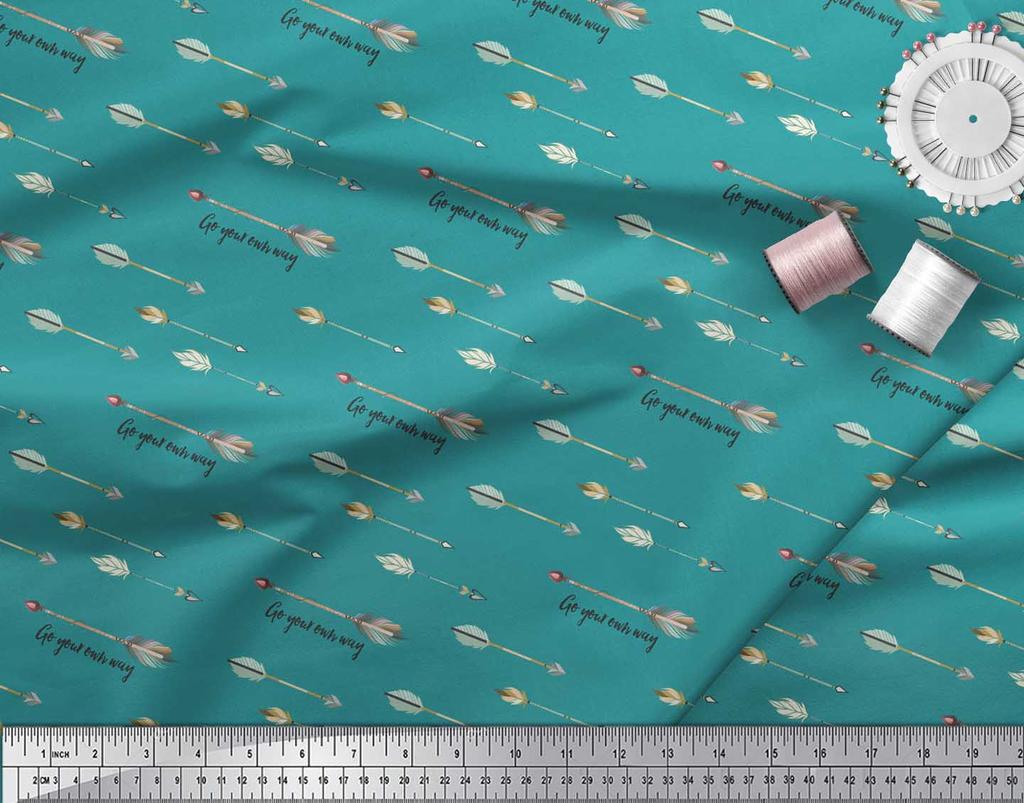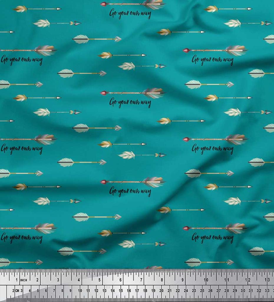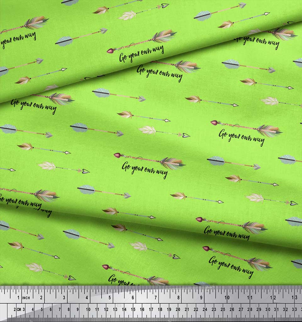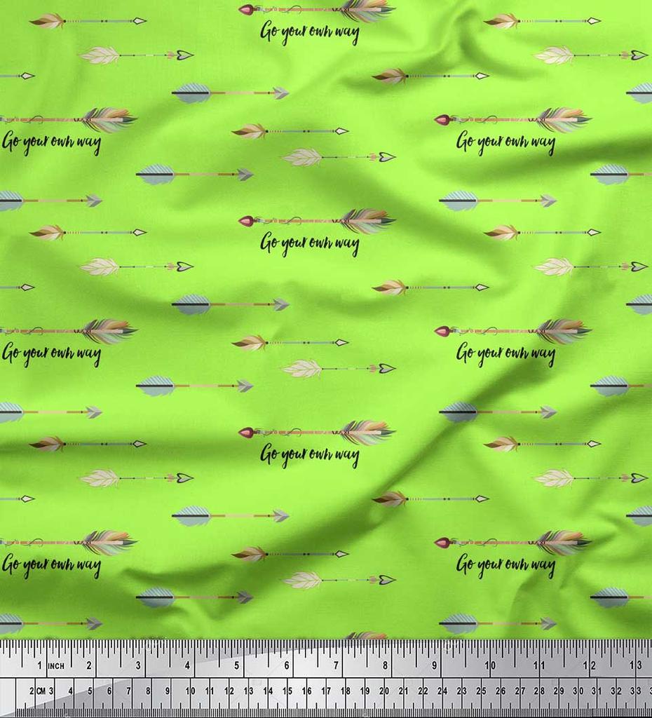 Soimoi Зеленая японская креп-сатиновая ткань с текстом и стрелкой, ткань с племенным декором, печатная, метр 42 дюйма