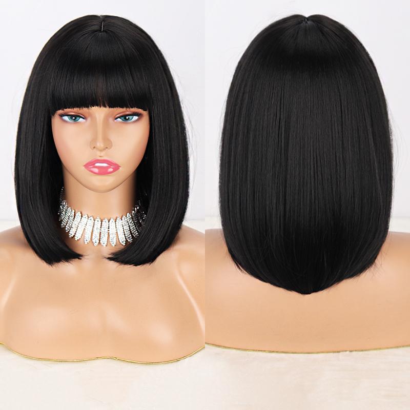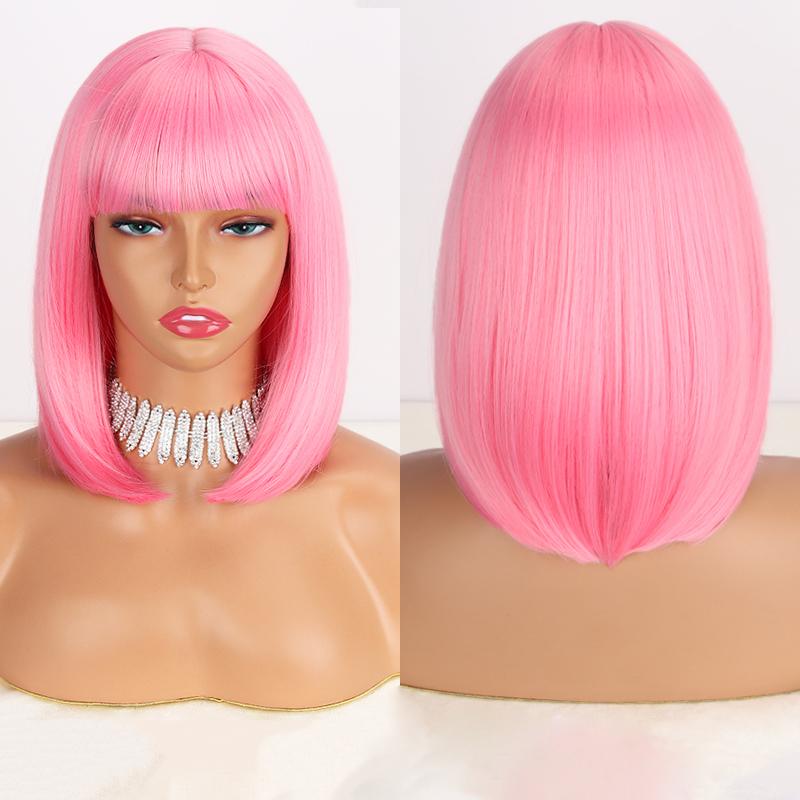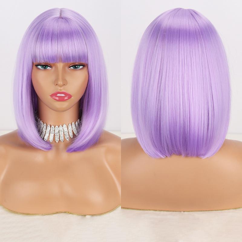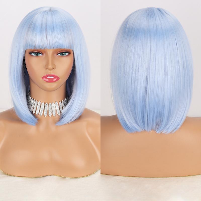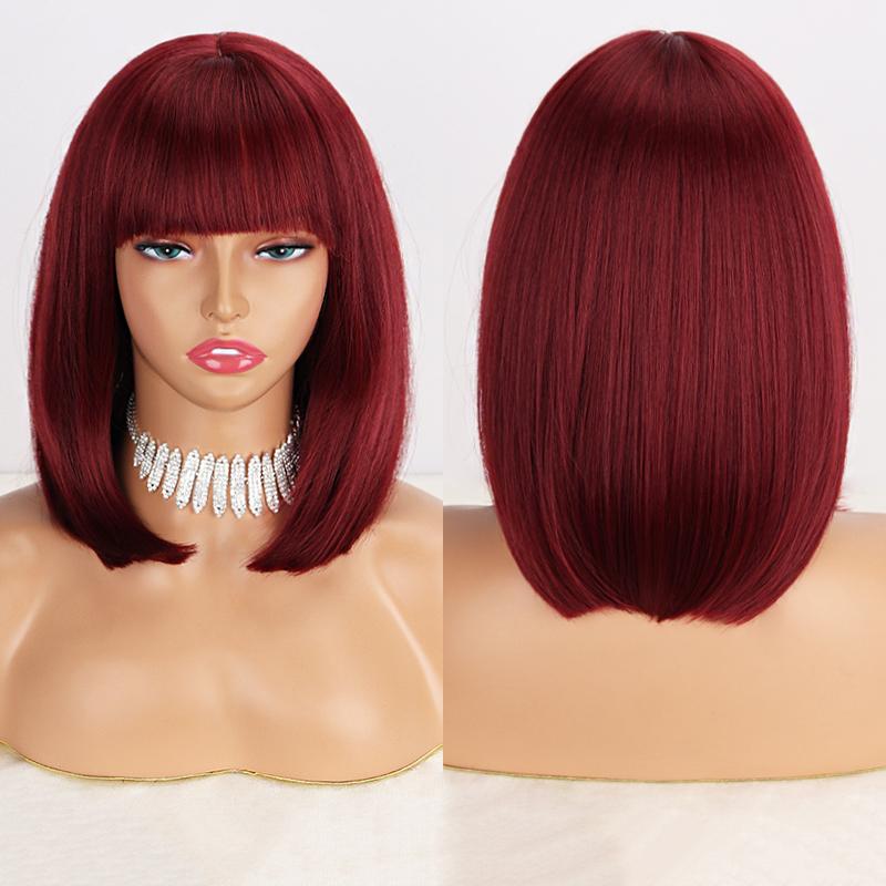 LISI HAIR Женские прямые волосы цвета красного вина до плеч с челкой из синтетического волокна, короткий прямой парик боб, однотонный парик боб