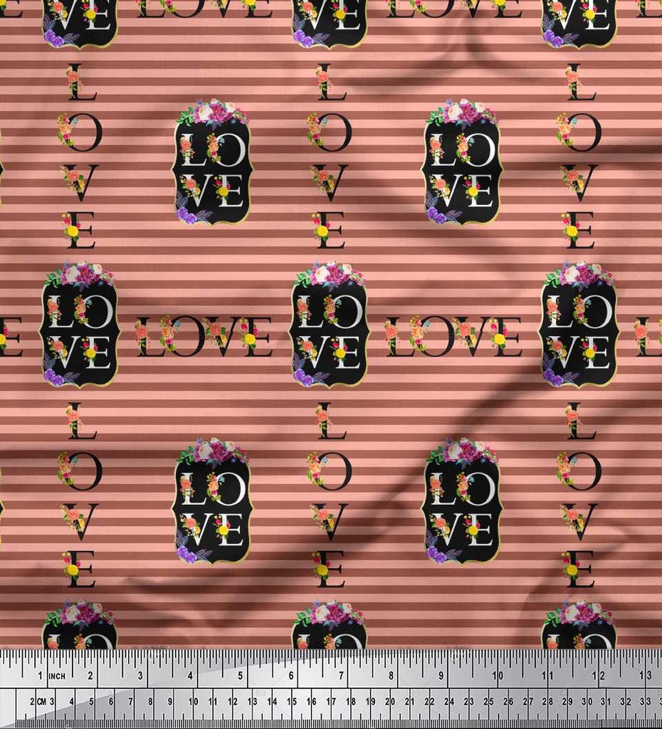 Soimoi Orange Japan Crepe Satin Fabric Stripe & Floral Alphabet Text Printed Craft Fabric by the metre 42 Inch