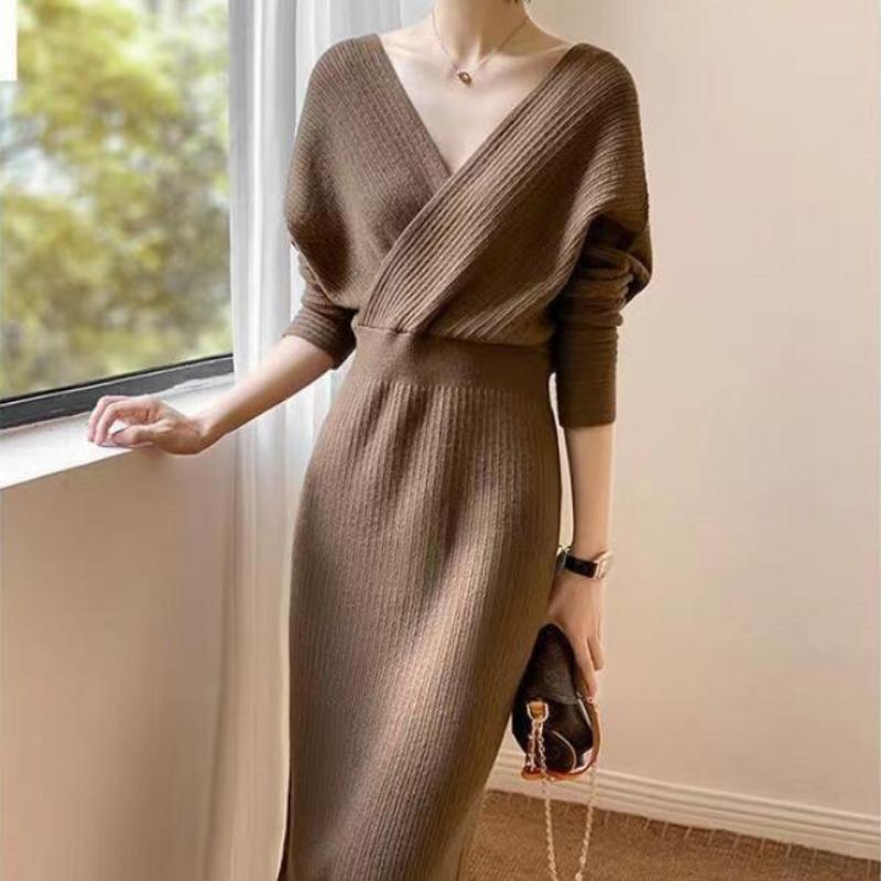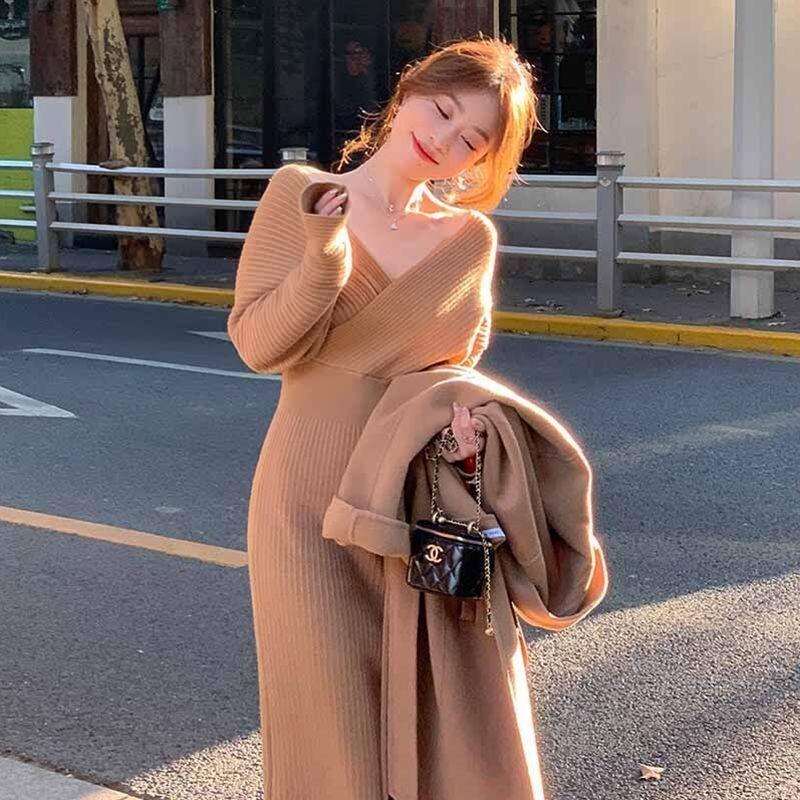 Пуловер, свитер, осень 2022, повседневный однотонный свитер с v-образным вырезом, длинный свитер выше колена, вязаный свитер, осенние и зимние женские топы