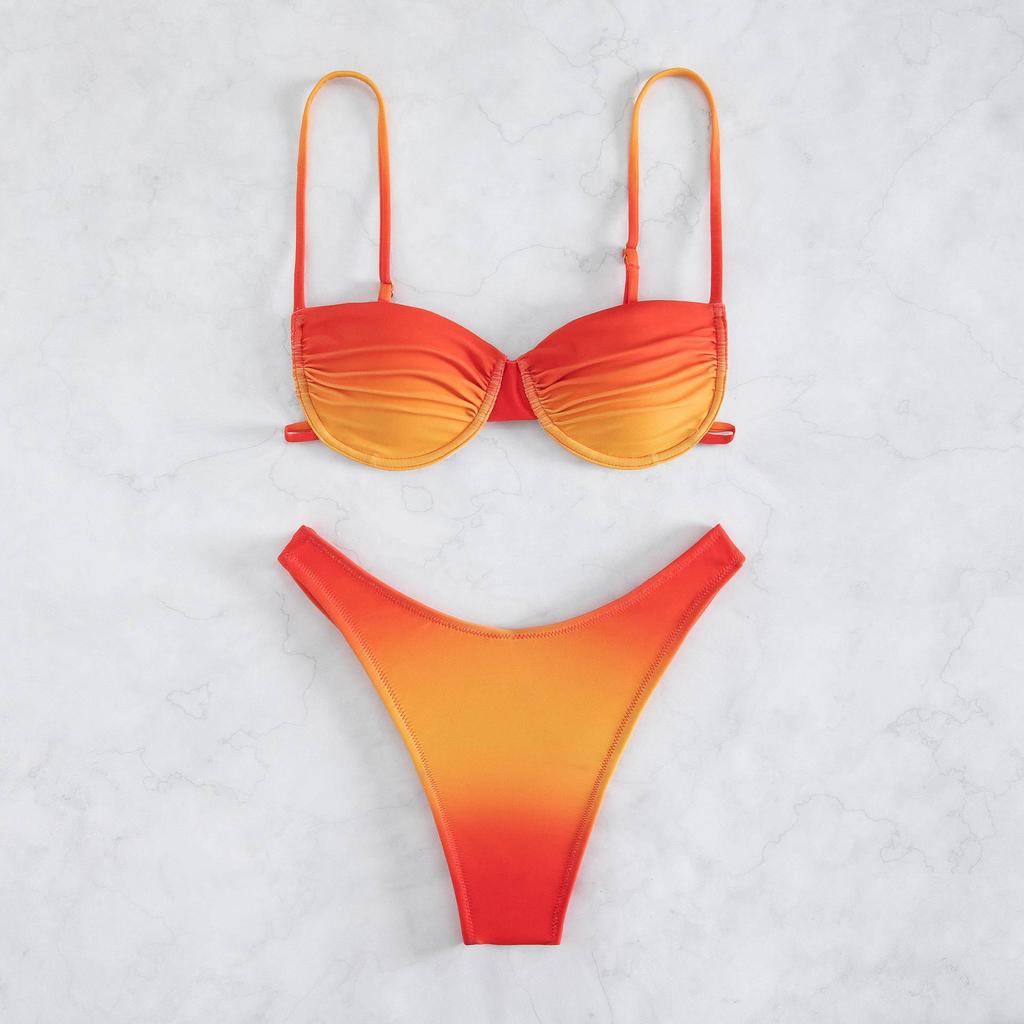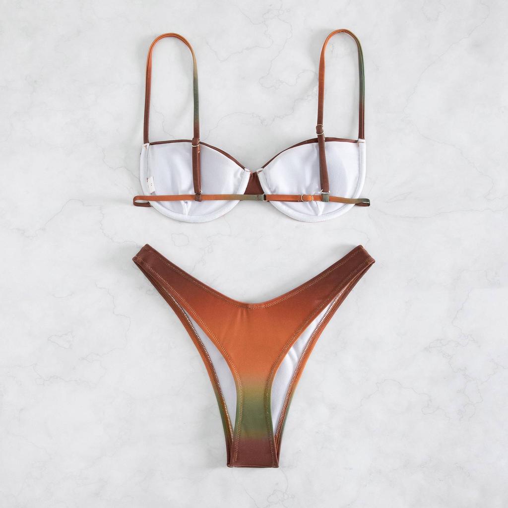 Треугольный одинарный купальник с лямкой на шее и открытой спиной, костюмы бикини, женские купальники на шнуровке с градиентным разрезом