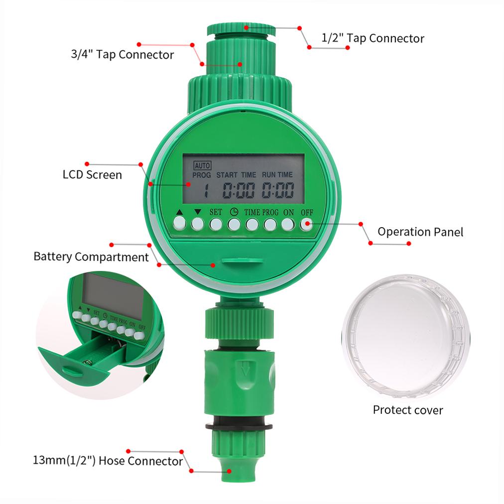 Особенности простой, легкой установки и программирования. Нет необходимости в инструментах. Просто установите время начала, продолжительность полива и частоту. Большой, легко читаемый ЖК-экран упрощает программирование. Больше никаких мертвых растений или сырых газонов, потому что вы забыли их поливать.