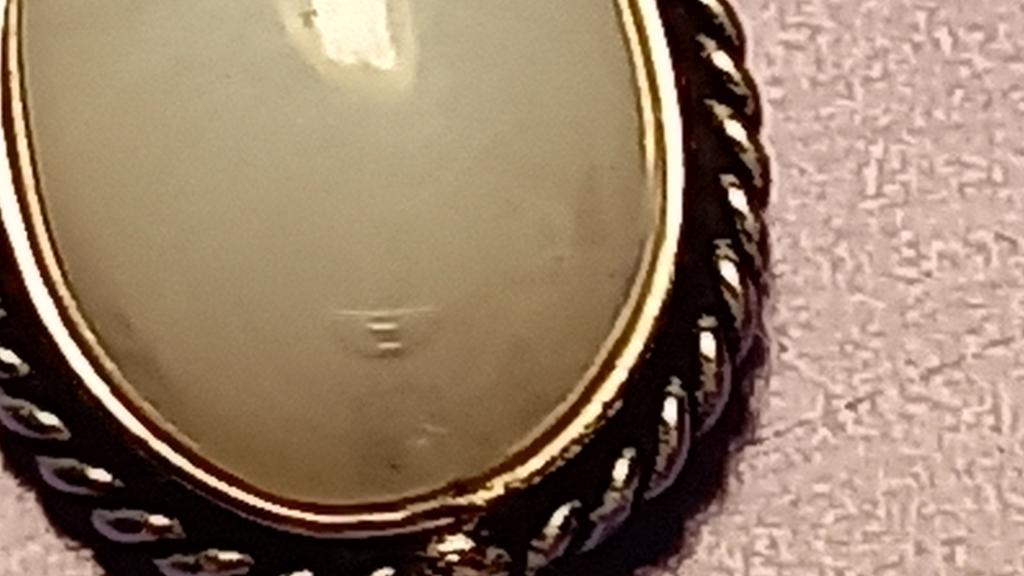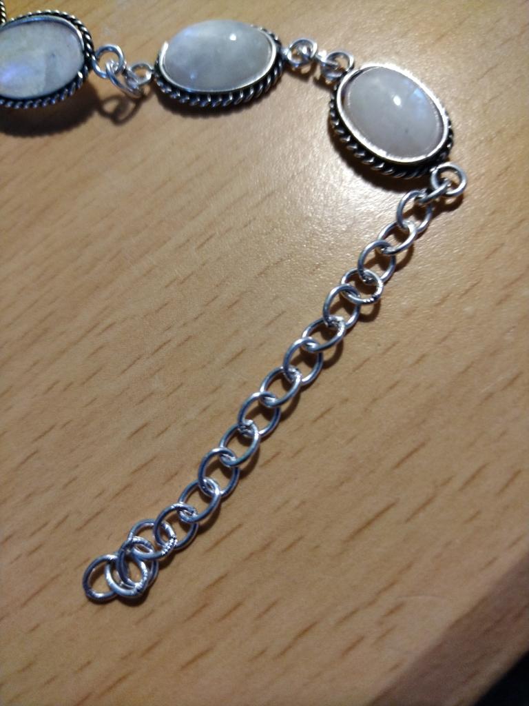 Браслет с лунным камнем (?) в латуни. Дорого, платила 523₽, а это даже не мельхиор.