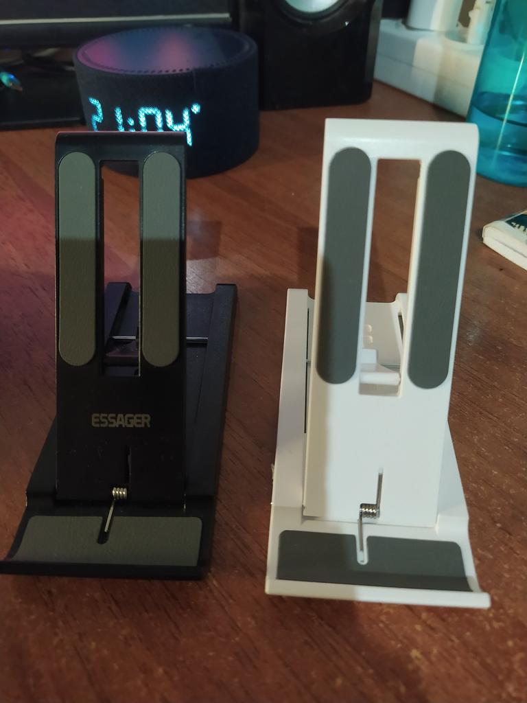 Размер конструкции оказался меньшим по размеру. Реально размером с визитку. И если повысить качество деталей, особенно в местах стыковки, была бы очень неплохой подставкой. За идею 5, за литье из пластика 3. Наклон смартфона регулируется, что удобно, но вся конструкция довольно хлипкая, охотно рассыпается при небольшом усилии. И вот что еще. Толщина вашего смартфона должна быть от 9 до 10мм! Мой смартфон ровно 10, сидит плотно. При аккуратной сборке вполне можно пользоваться. Хоть какая то удобная опора на пустом месте и в принципе из ничего.