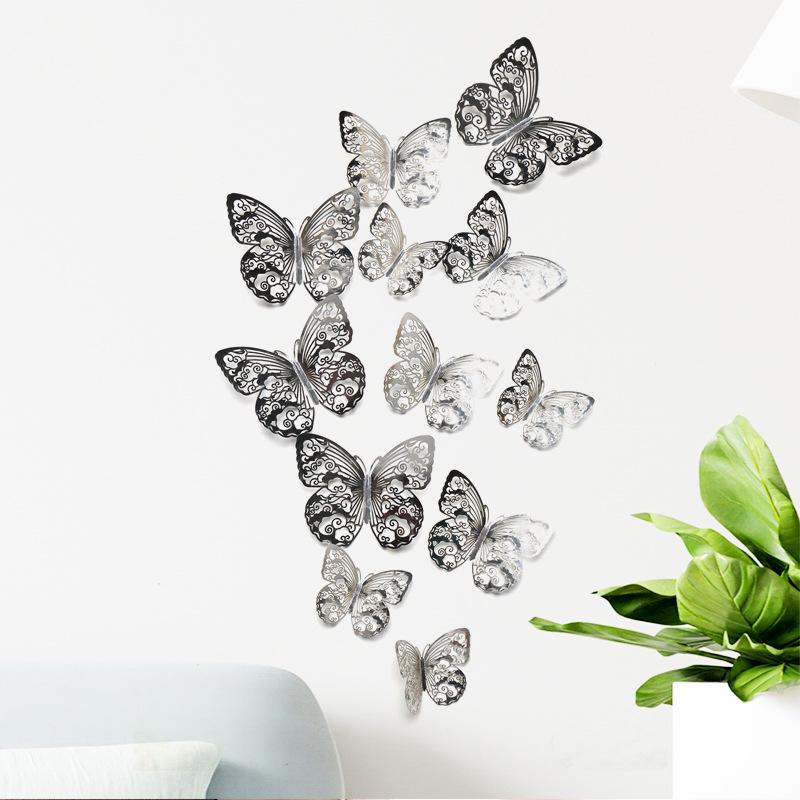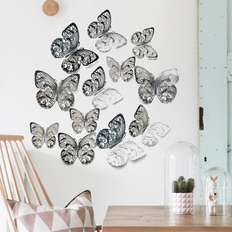 10 цветов 12 шт. бабочка серебряное зеркало украшение дома комната искусство 3D DIY наклейки на стену