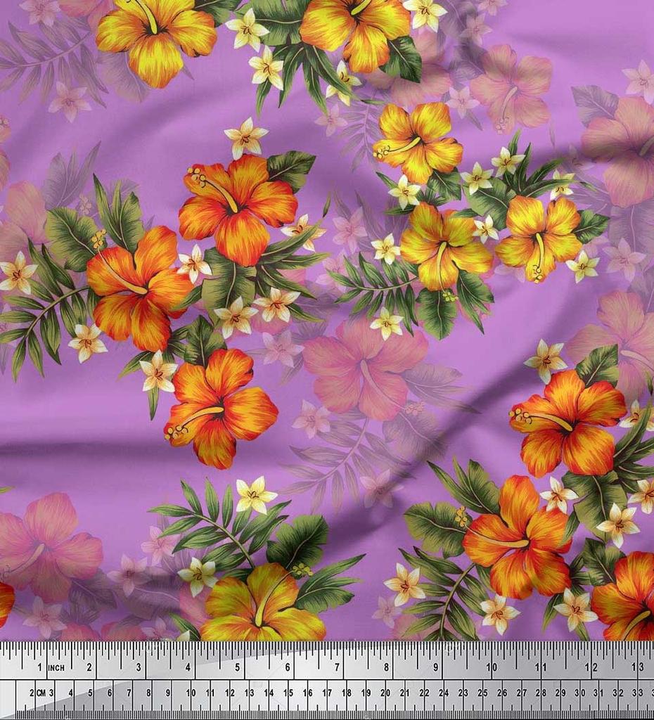 Soimoi Японская креп-сатиновая ткань с цветочным принтом и листьями, тропическая ткань, принты по метрам, 42 дюйма