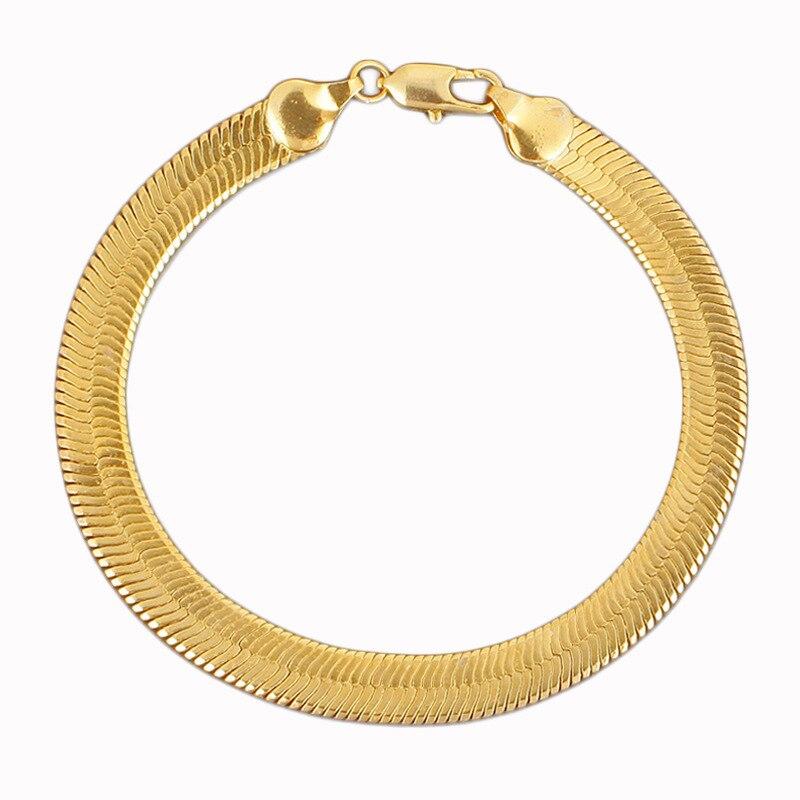 Браслет из 24-каратного золота, цепочка из змеиной кости, позолоченный браслет. Браслет из лезвия из 18-каратного золота, браслет 10 мм, 21 см.
