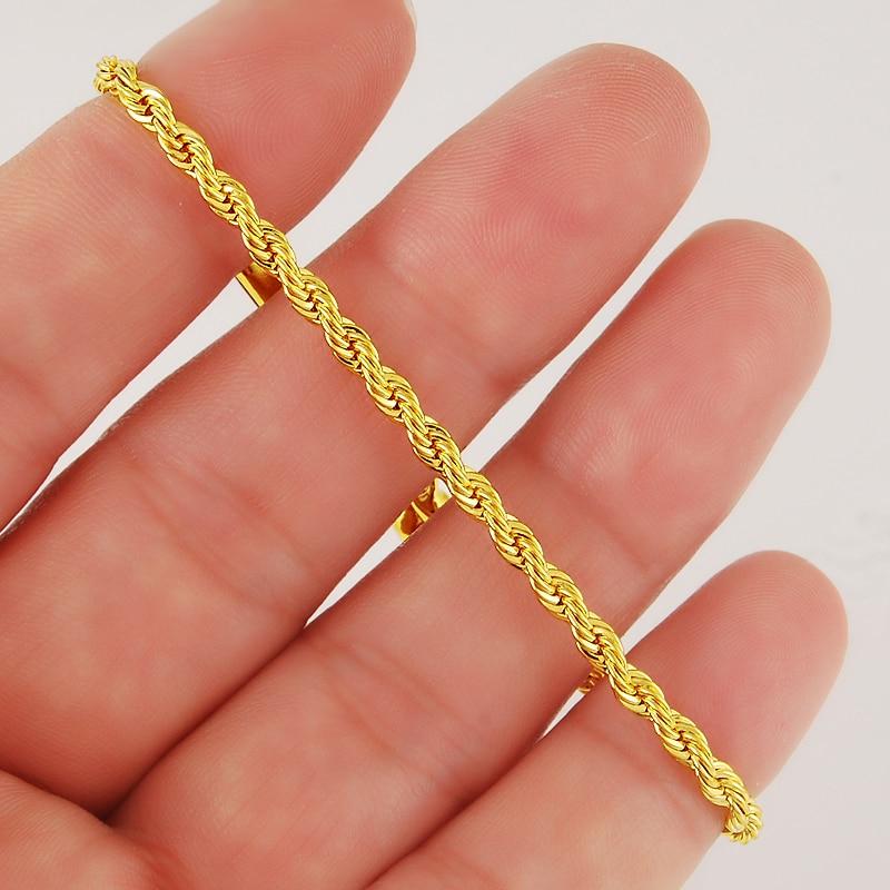Браслет из настоящего золота 24 карата, витая веревка 3 мм, витой позолоченный браслет для мужчин и женщин, свадебные украшения, подарки