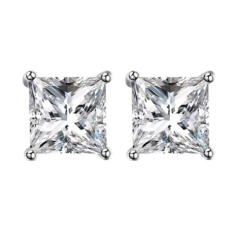 Серьги-иглы из 100% твердого серебра 925 пробы для женщин, свадебные украшения, высококачественные серьги-гвоздики с квадратным прозрачным кристаллом и цирконием