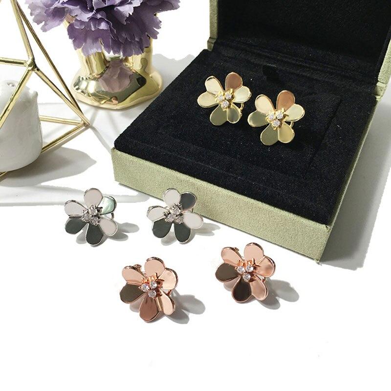 Серьги-клипсы, 3 тона золота, микроинкрустация, циркон, Cz, нежные цветочные серьги для женщин, свадебные украшения