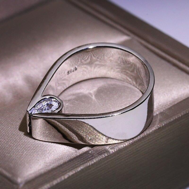 Стерлингового Серебра 925 пробы, модные геометрические кольца на палец, обручальные кольца с цирконием для женщин, большие серебряные ювелирные изделия