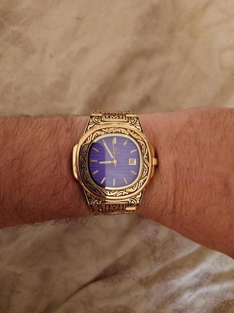Металл довольно блестящий, ожидал, что поспокойнее будут, но нормально. Рисунок циферблата делает его почти не читабельным, время не определить, они больше для стиля. Доволен за 1800р.