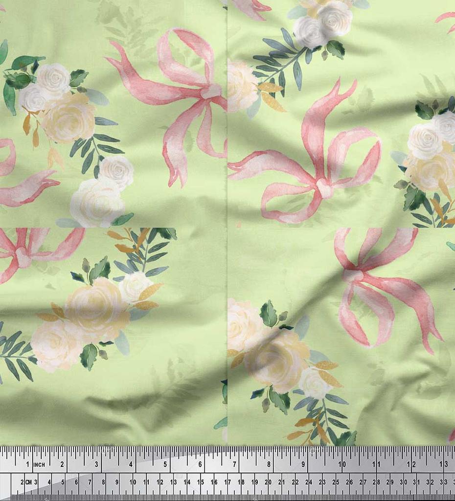 Soimoi Зеленая лента из креповой ткани и венок из белой розы Цветочные принты на ткани по метрам 42 дюйма