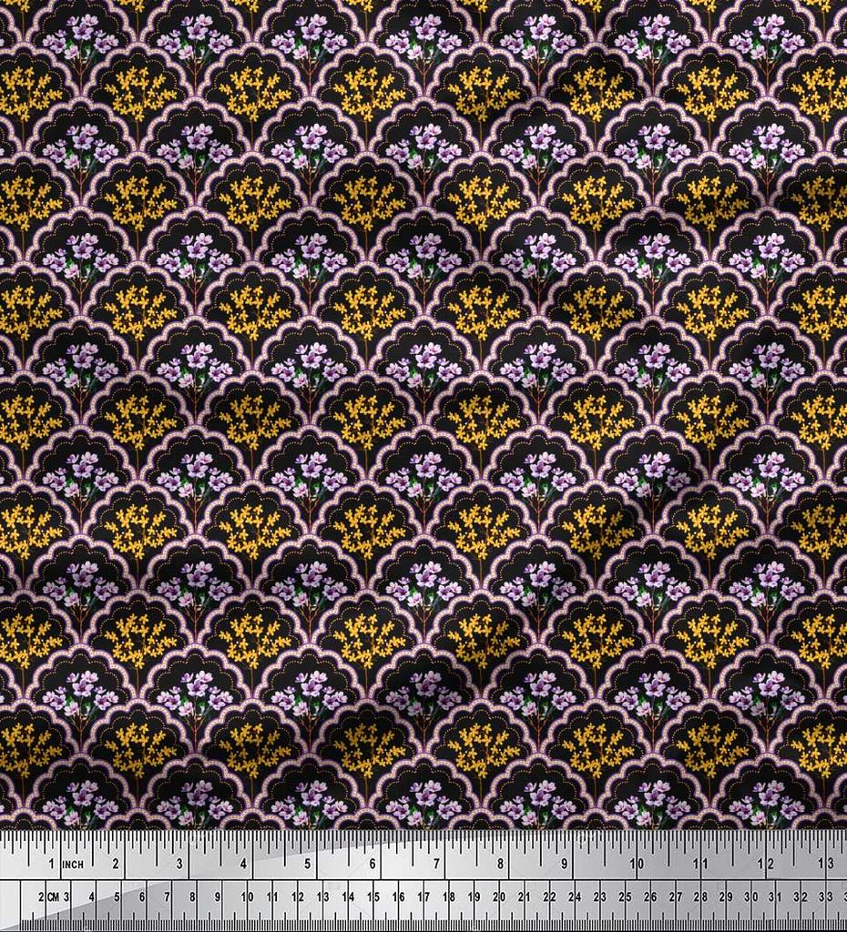 Soimoi Черная полиэфирная креповая ткань с принтом вишневого цвета и дамасской ткани по метрам 42 дюйма