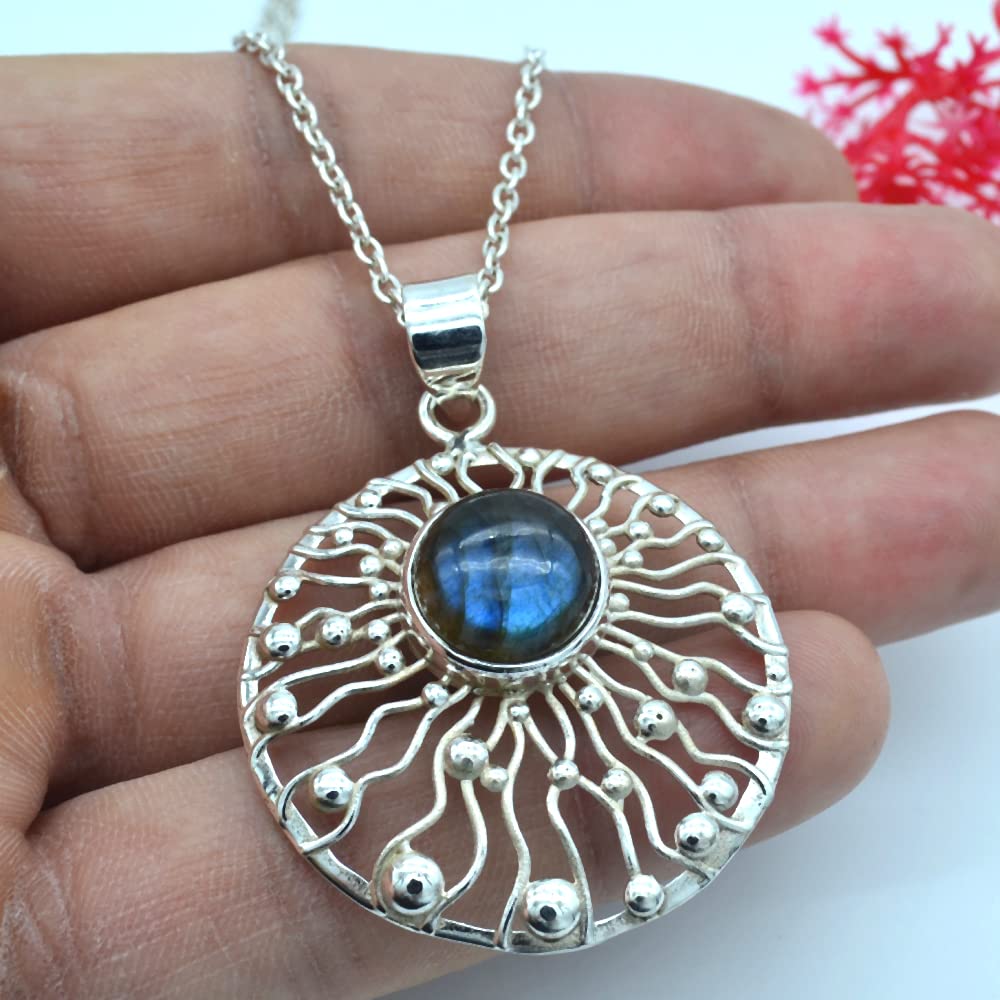 МАТЕРИАЛ - СЕРЕБРО 925 ПРОБЫ - ДРАГОЦЕННЫЙ КАМЕНЬ - лабрадорит : Вес серебра. 12,1 Гмс : Длина ожерелья-19,80 дюйма : Длина кулона -1,8 дюйма : Ширина кулона - 1,4'' Размер цепочки - 18'' : КАМЕННАЯ ФОРМА - круглый кабошон : ЦВЕТ — Синий с огнем