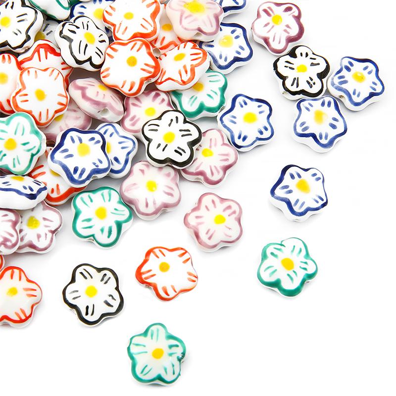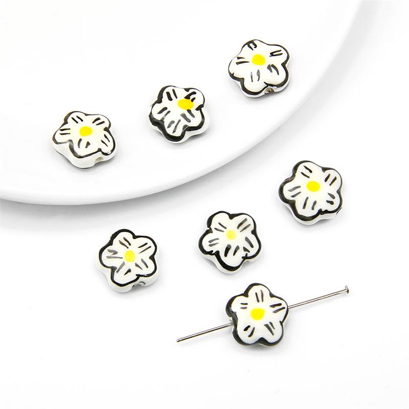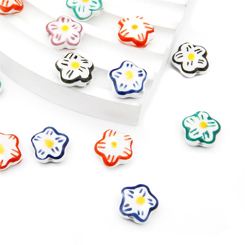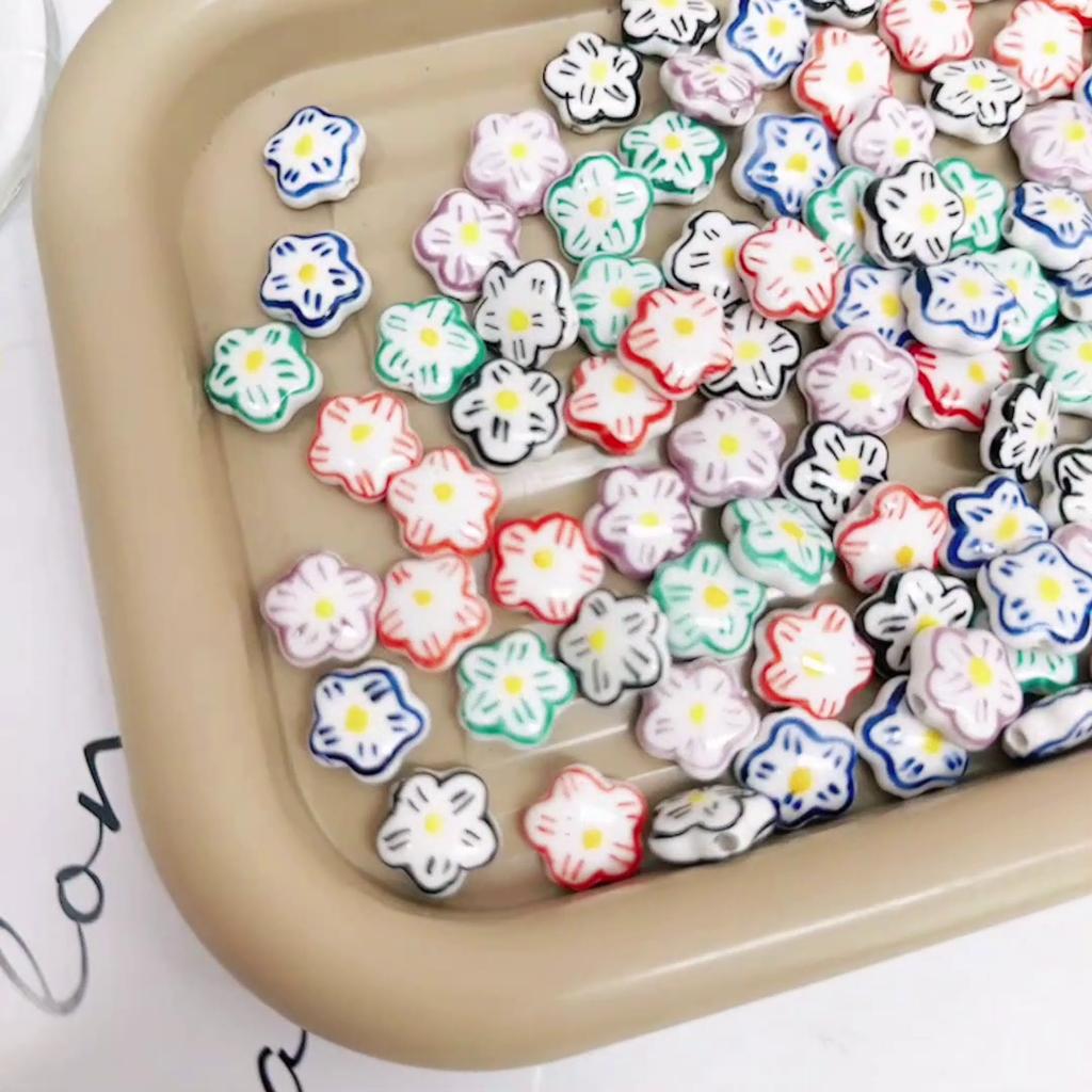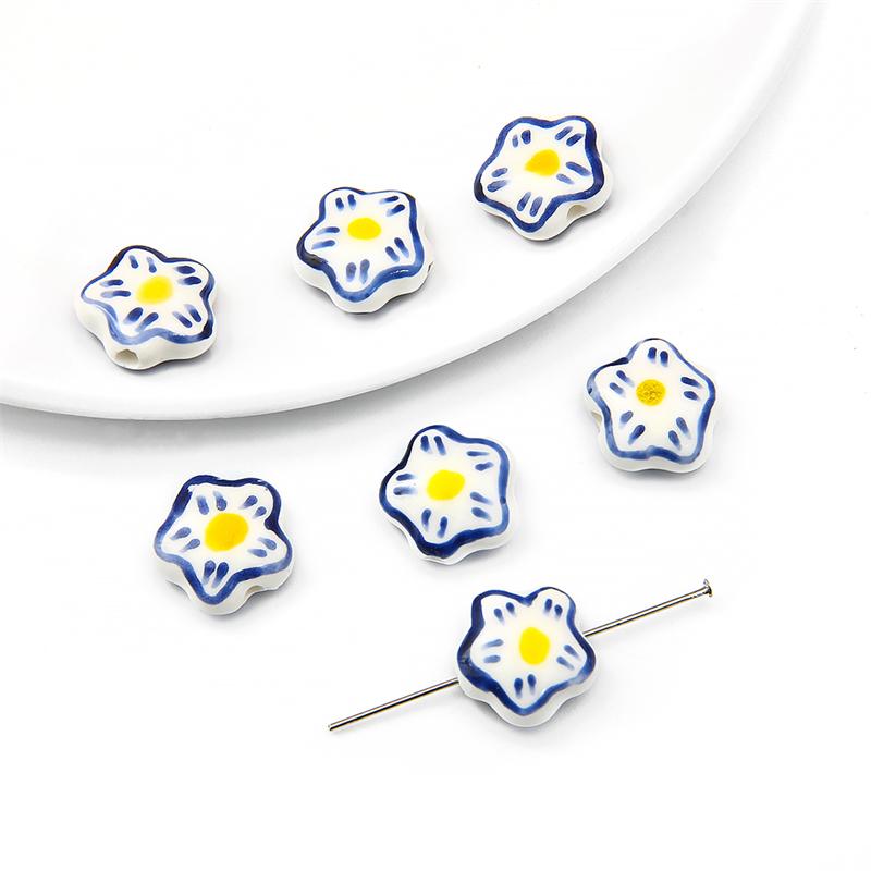 2 шт./пакет, ручная роспись, 15 мм, керамические фарфоровые бусины в виде цветов, очаровательные свободные бусины-разделители для ожерелья, сережек, сделай сам, изготовление ювелирных изделий