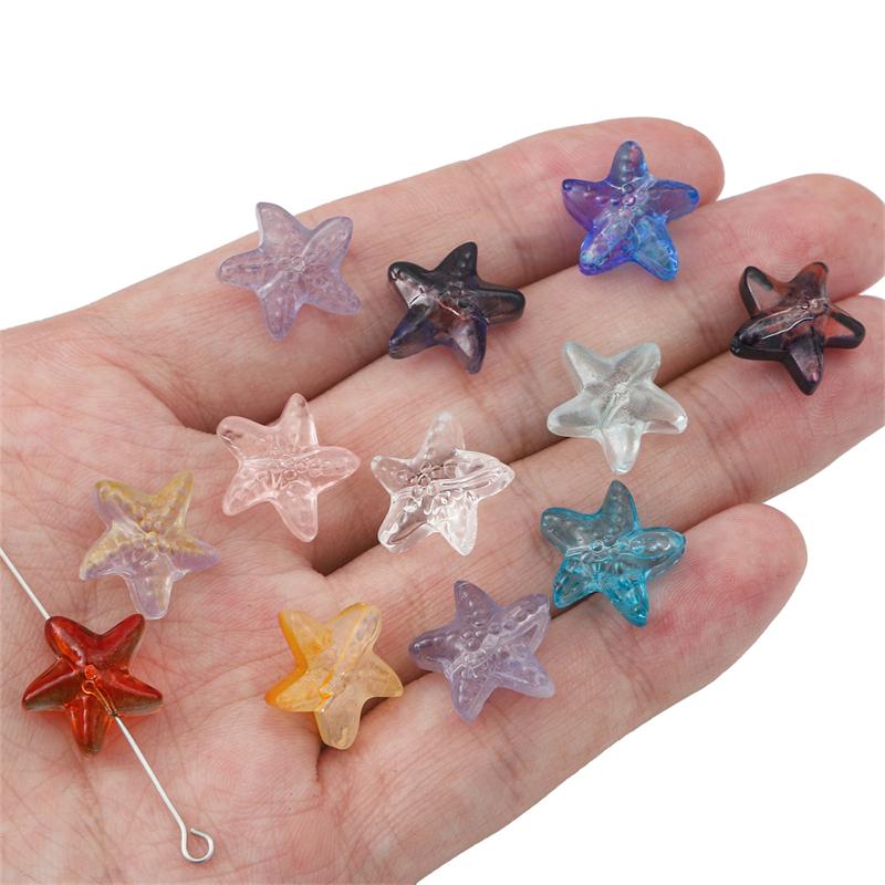 10 шт./пакет 15 мм стеклянные бусины в форме морской звезды, подвески для ожерелья, браслета, серьг, DIY ювелирных изделий, аксессуары для рукоделия