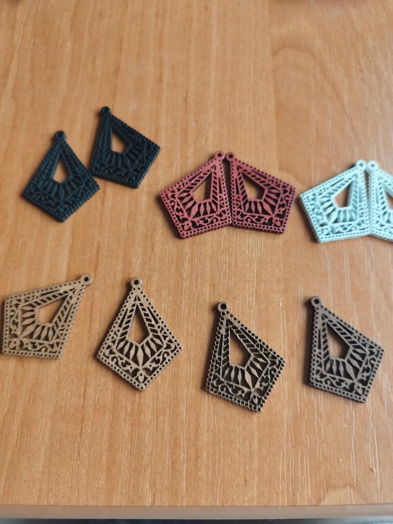Красивые, с филигранью, разных оттенков. Из всего количества собрала только 3 пары. Коричневые оттенки все разные. Жаль. Придется придумывать , как их использовать. Они одинарные. Качество хорошее. Спасибо