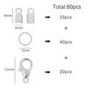 80 шт./пакет, застежка-лобстер, кольца из сплава, кожаный зажим, складные обжимные соединители для браслета, ожерелья, принадлежности для изготовления ювелирных изделий своими руками