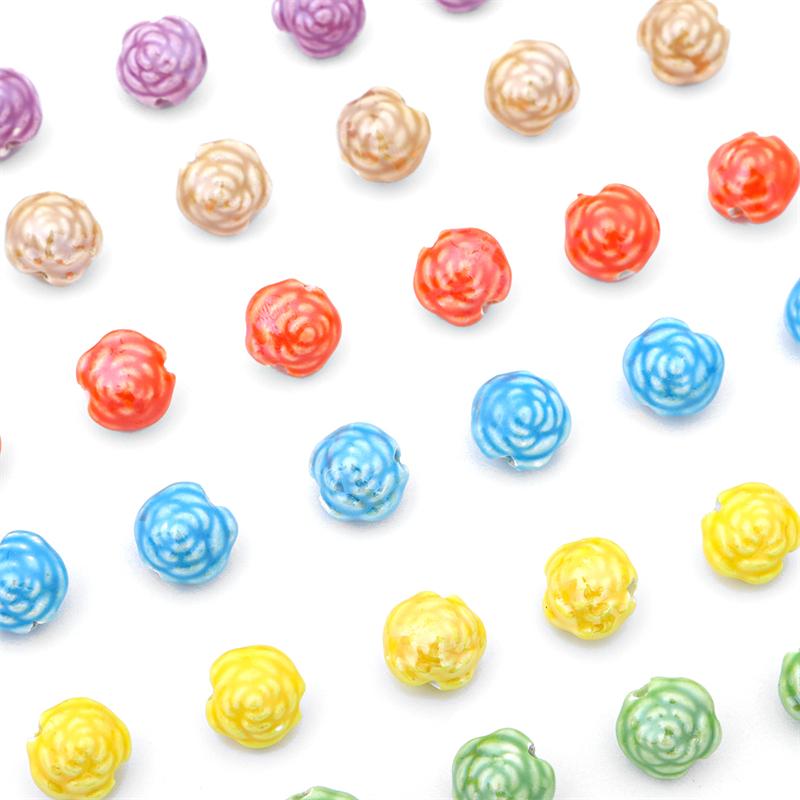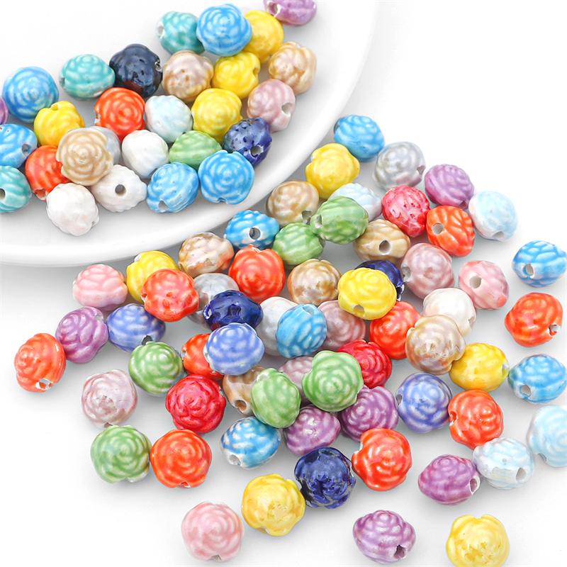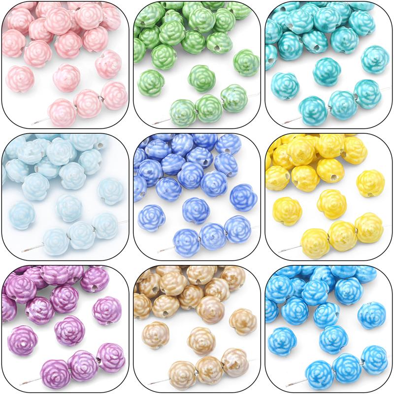 10 шт./пакет 12x10 мм красочные керамические бусины ручной работы с цветком розы, фарфоровые бусины-разделители для ожерелья, браслета, изготовления ювелирных изделий своими руками