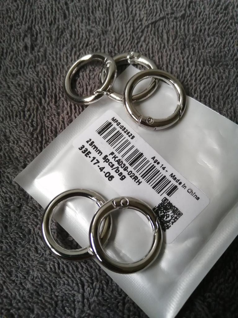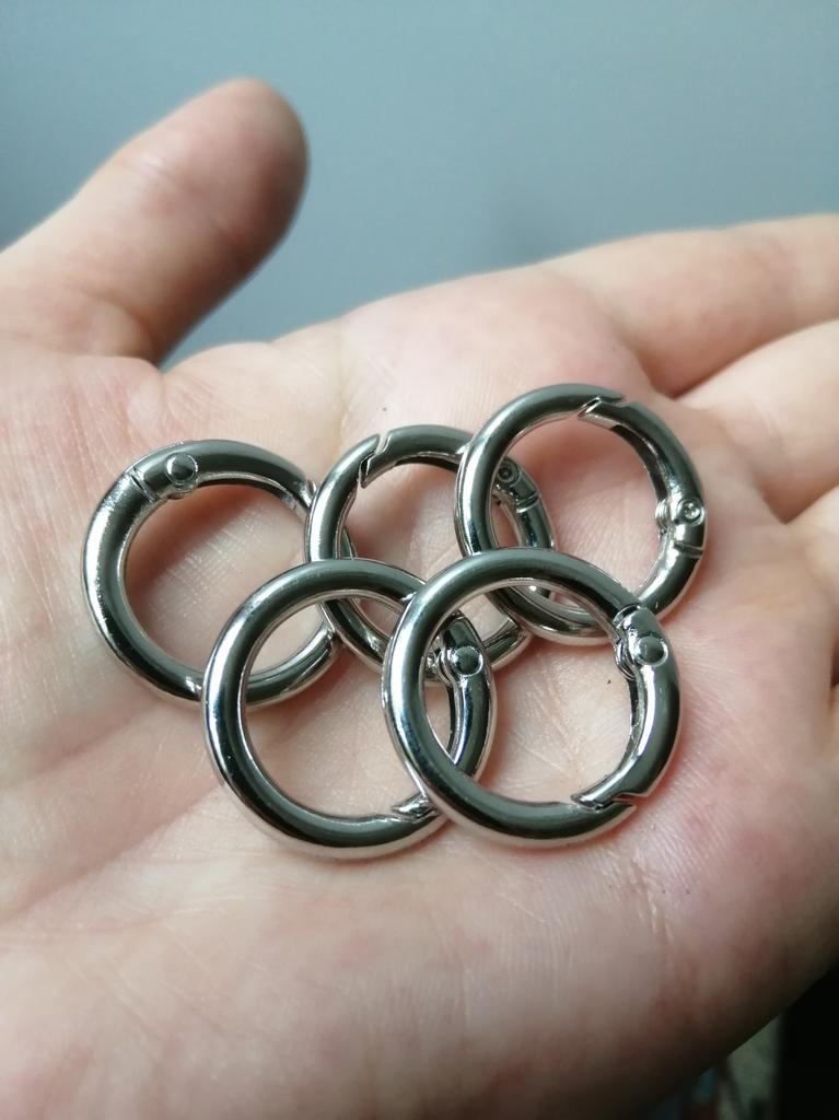 НАБОР ИЗ ПЯТИ КОЛЕЦ-КАРАБИНОВ СЕРЕБРЯНОГО ЦВЕТА 🔹Хорошее качество металла. Карабины крепкие, держат надёжно. 🔹Размер и количество товара в упаковке соответствует заявленным параметрам. Рада покупке! Спасибо продавцу и Joom💞. Сроки заказа в сборной посылке: 30.04.2025 - 01.07.2025.