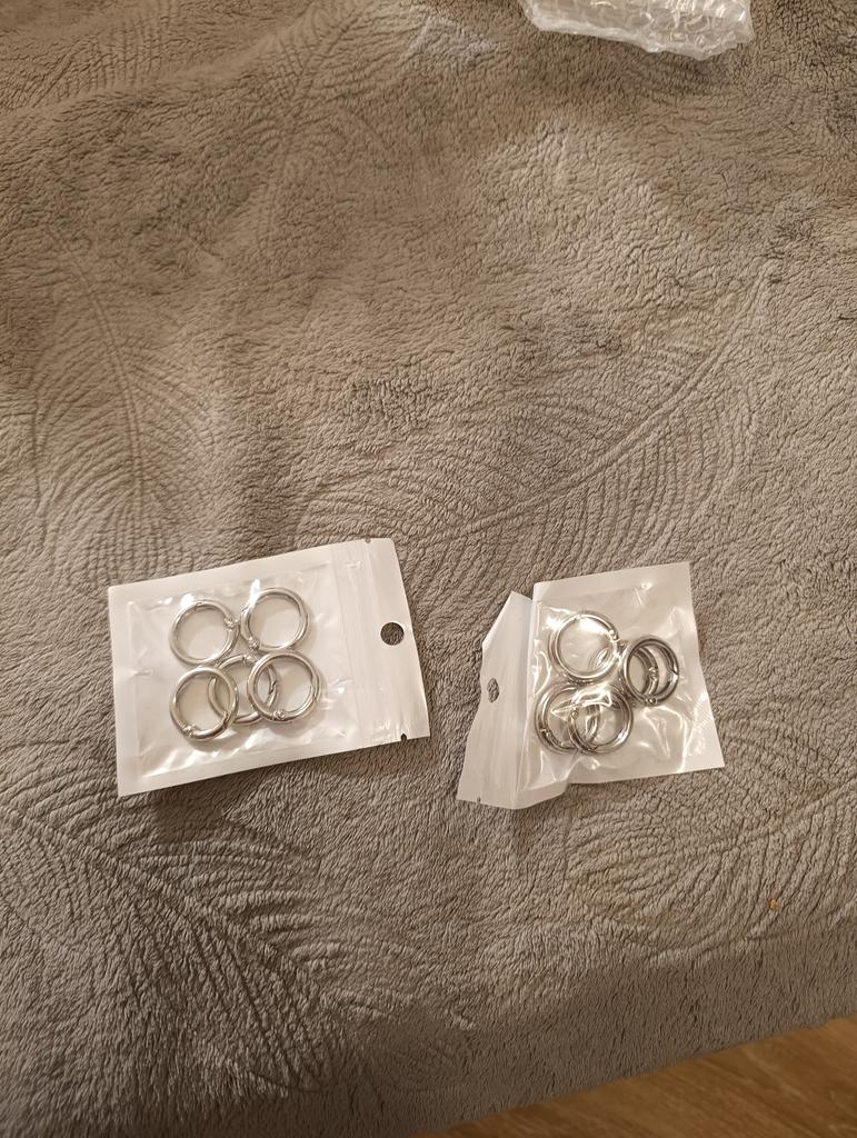 Немного ошиблась с размером колец. Надо было брать больше размером. Здесь мериться с внешних сторон кольца, я думала подойдут. Увы! Кольца хорошие. Рекомендовать могу!