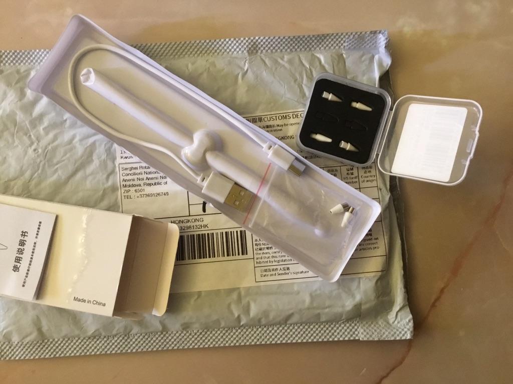 Получили в Молдове 16.01.2024, заказали 11.12.2023 Стилус пришел заряженный, тяжеленький. В комплекте USB-провод и 2 запасных наконечника (что очень меня порадовало). Пишет хорошо на телефоне, на планшете сильно стучит по стеклу, но думаю тут проблема конкретно моего планшета) Читала в комментариях, что у одной девушки если держать стилус на одном месте будет дергаться кисть. Я такого у себя не наблюдаю. *Прилагаю фото* П.С. дополняю 10-го февраля. Пользовалась стилусом не слишком активно, работает нормально, НО Он не показывает, когда разрядился. Т.е. я пользуюсь им, и понимаю, что очень плохо работает. То, что он разрядился до меня не сразу дошло. Просто имейте в виду при покупке. Еще раз, спасибо продавцу. П.С.2. Дополняю 28.06.2024. Не особо активно пользуюсь, все нравится, рисует хорошо.