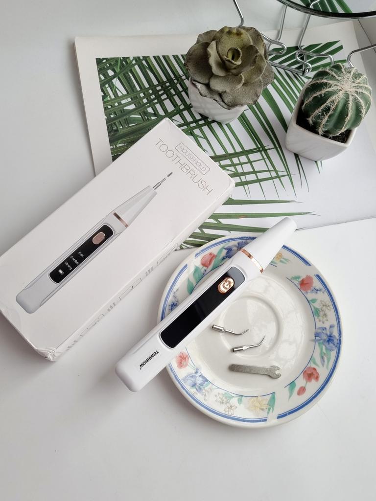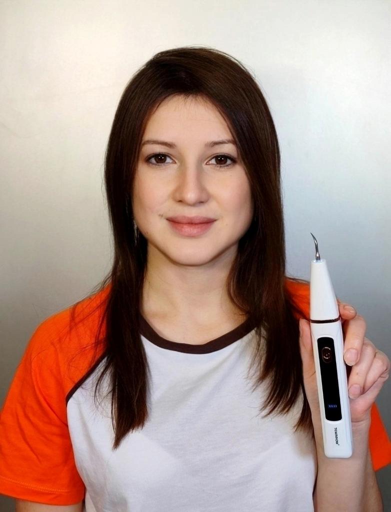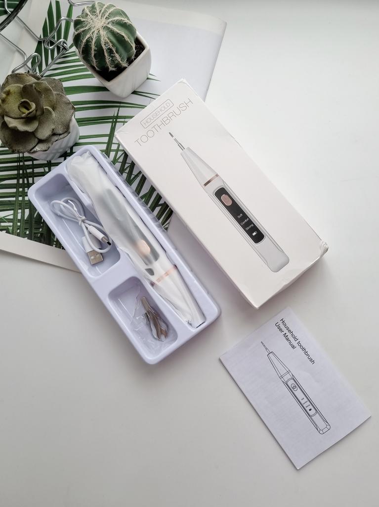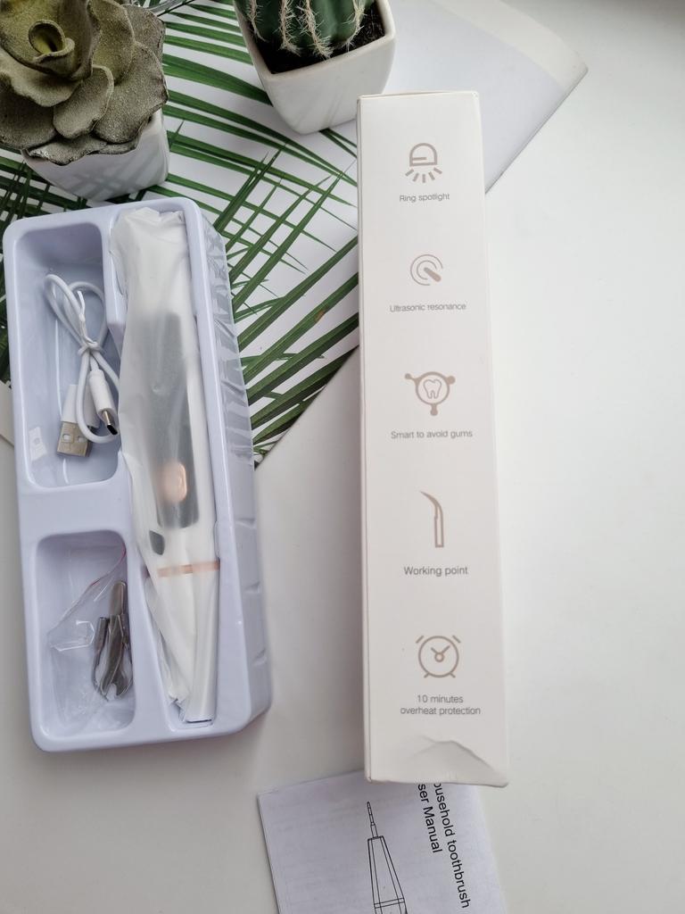 Ультразвуковой скалер 🔥🔥🔥Лучшие предложения и скидки, ПРОМОКОДЫ в моём Telegram @Egogorushka88. 🔥🔥🔥Есть свежий промокод на 11%) У меня скученные зубы, их чистка довольно проблематична, и как бы я ни старался тщательно чистить зубы, но со временем на труднодоступных местах все равно образовывается налёт и зубной камень, который уже просто так не очистить. Чисто случайно наткнулась в интернете на этот прибор. Я и не знал, что они существуют. Я имею в виду в таком виде, для домашнего использования. В комплект к скалеру входит: 📎Прибор для чистки зубов, 📎Металлические насадки - 2шт 📎Гаечный ключ для смены насадок 📎USB-кабель для зарядки 📎Руководство по эксплуатации. Прибор довольно легкий, рука от него во время использования не устаёт, а благодаря своей эргономичный форме удобно ложится в руке. Всего ультразвуковой скалер может работать в трёх различных режимах: мягкий, комфортный и мощный. Каждый режим имеет свой световой индикатор на рукоятке прибора, который подсвечивается во время работы. Режимы отличаются друг от друга интенсивностью воздействия и мощностью. Режим необходимо выбирать в зависимости от вида загрязнения, а точнее от величины зубного камня или пятна. Насадки из набора - одна остроконечная, а вторая широкая. Остроконечную насадку нужно использовать для чистки зубов вдоль дёсен. Насадка с широким концом используются для чистки всей поверхности зуба. По кругу насадки на приборе расположена подсветка, которая автоматически включаются во время работы. Светит довольно ярко, что значительно облегчает видимость во время чистки зубов. Прибор не издаёт никакого звука и никаких вибраций во время работы. Звук работы слышен только при соприкосновении насадки с зубами. Ультразвуковой скалер для чистки зубов - это шикарный помощник в гигиене за полостью рта!