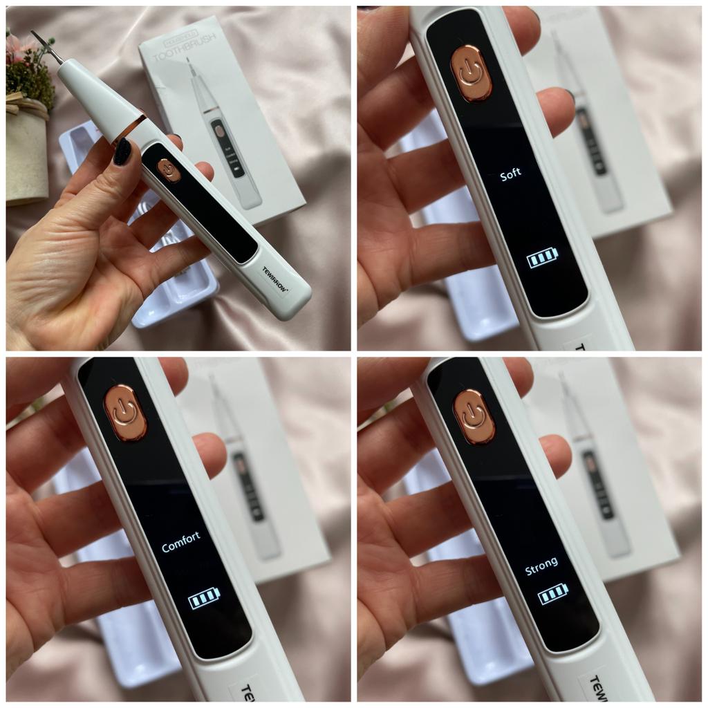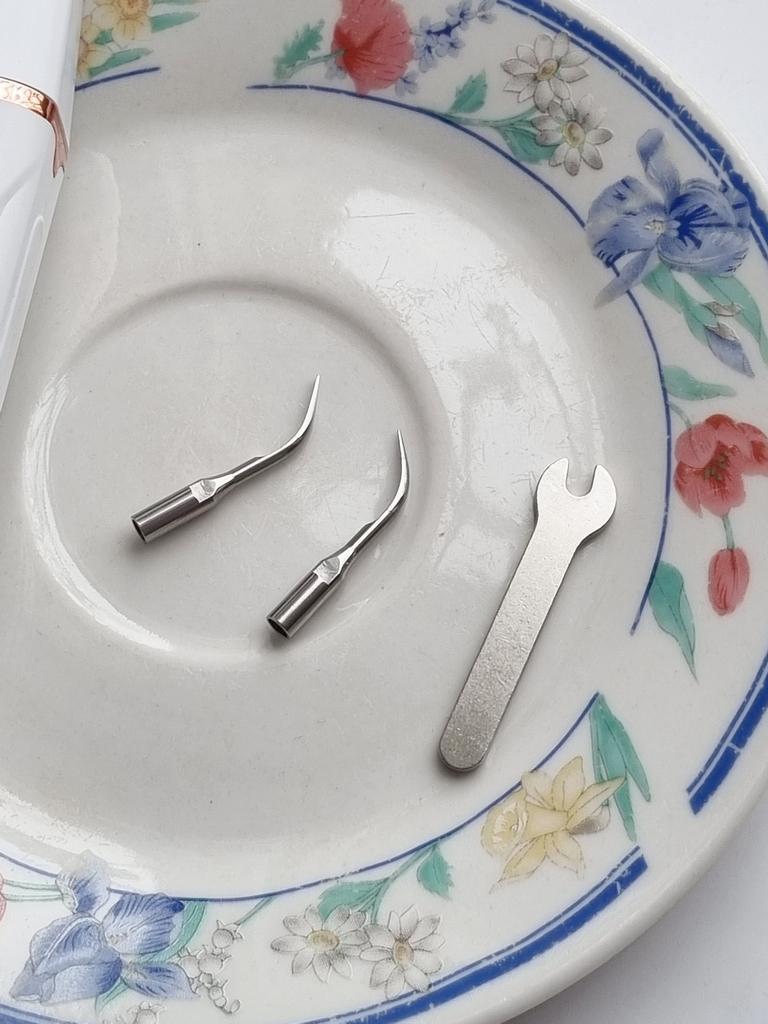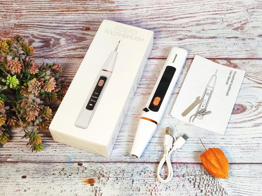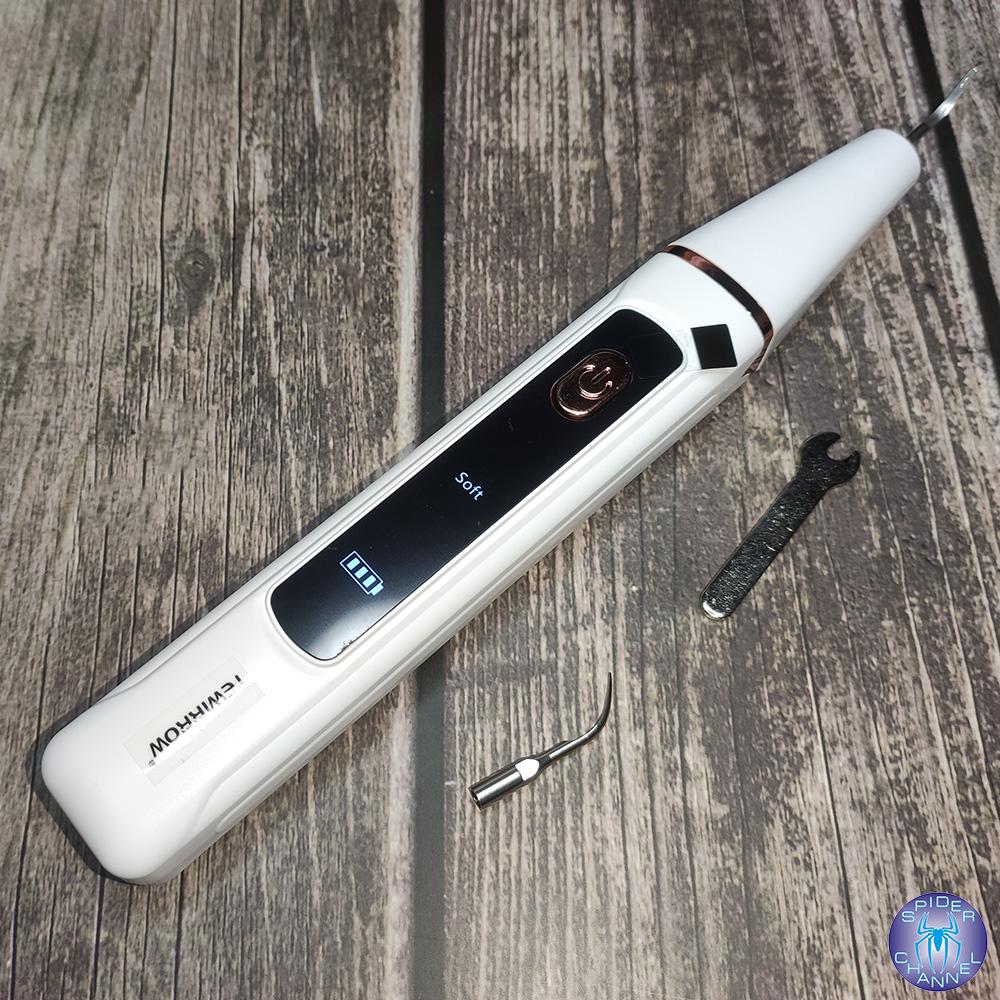 Ультразвуковой скалер 🔥🔥🔥Лучшие предложения и скидки, ПРОМОКОДЫ в моём Telegram @Egogorushka88. 🔥🔥🔥Есть свежий промокод на 11%) У меня скученные зубы, их чистка довольно проблематична, и как бы я ни старался тщательно чистить зубы, но со временем на труднодоступных местах все равно образовывается налёт и зубной камень, который уже просто так не очистить. Чисто случайно наткнулась в интернете на этот прибор. Я и не знал, что они существуют. Я имею в виду в таком виде, для домашнего использования. В комплект к скалеру входит: 📎Прибор для чистки зубов, 📎Металлические насадки - 2шт 📎Гаечный ключ для смены насадок 📎USB-кабель для зарядки 📎Руководство по эксплуатации. Прибор довольно легкий, рука от него во время использования не устаёт, а благодаря своей эргономичный форме удобно ложится в руке. Всего ультразвуковой скалер может работать в трёх различных режимах: мягкий, комфортный и мощный. Каждый режим имеет свой световой индикатор на рукоятке прибора, который подсвечивается во время работы. Режимы отличаются друг от друга интенсивностью воздействия и мощностью. Режим необходимо выбирать в зависимости от вида загрязнения, а точнее от величины зубного камня или пятна. Насадки из набора - одна остроконечная, а вторая широкая. Остроконечную насадку нужно использовать для чистки зубов вдоль дёсен. Насадка с широким концом используются для чистки всей поверхности зуба. По кругу насадки на приборе расположена подсветка, которая автоматически включаются во время работы. Светит довольно ярко, что значительно облегчает видимость во время чистки зубов. Прибор не издаёт никакого звука и никаких вибраций во время работы. Звук работы слышен только при соприкосновении насадки с зубами. Ультразвуковой скалер для чистки зубов - это шикарный помощник в гигиене за полостью рта!