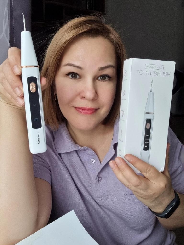 Ультразвуковой скалер для очистки зубов от камня и налёта. Очень эффективный! Почистила зубы от камня собаке. Конечно, приучала её к звуку прибора постепенно, со вкусняшками. Но знаете: таким собакам в ветклинике зубы от камня чистят под общим наркозом, так что оно стоило того. Следующий на очереди муж. Прибор на аккумуляторе, зарядка через разъём type-c. Есть 3 режима работы: soft, comfort, strong. Нам хватило самого мягкого режима для хорошего результата. Скалер с яркой подсветкой, режимы работы переключаются последовательным нажатием единственной кнопки управления. Рекомендуется начинать с пониженной передачи и постепенно повышать передачу после адаптации. Имеется 10 мин. функция автоматического отключения, чтобы предотвратить перегрузку. Доставка 3 недели с отслеживаемым треком. В комплекте: прибор, подробная инструкция на английском, зарядный шнур, два наконечника и ключ для их фиксации. К покупке рекомендую! ‼️ Промокоды 10, 11% обзоры и самые выгодные покупки в Tеlеgram @zhuzhu_rec 📣 📣 Дарю промокод на скидку - 5 % при покупке любого товара Joom 🔥 H2FIJY7MN9🔥 Перевела инструкцию: Принцип работы: высокочастотная электрическая импульсная волна генерируется электронным колебательным контуром, усиливается до определенной интенсивности и передается на преобразователь, который преобразует электрическую энергию в механическую и побуждает рабочий наконечник производить вибрацию частоты ультразвука, для измельчения зубного камня, удаления стойких зубных пятен и рыхлого зубного камня. Предупреждения: Если у вас есть заболевания пародонта, проконсультируйтесь со своим стоматологом перед использованием. Если он находится на границе десны, может возникнуть небольшая кровоточивость десен. даже при здоровой десне. В процессе чистки зубов не оставайтесь на поверхности зубов в течение длительного времени. Для удаления камней и пятен упорные зубы, пожалуйста, поместите чистящую головку под углом 45 °. Длительный контакт с деснами может повредить десны. После запуска машины чистящая головка не издает звука, звук должен появится только при контакте с твёрдой поверхностью. При контакте с деснами, другими мягкими поверхностями скалер не вибрирует. Для наилучшего результата используйте в импульсном режиме: запустите на 2-3 секунды, затем остановитесь на 1 секунду, так работайте несколько раз, чтобы сохранить наконечник рабочей головки в наилучшем состоянии. При чистке зубов требуется только легкий контакт и повторяющиеся движения с определенной скоростью, чтобы очистить зубы от камней. Не применяйте силу и не оставайтесь слишком долго при чистке зубов! Машина представляет собой прецизионное оборудование. Пожалуйста, избегайте повреждения внутренних и внешние деталей, при падении или ударе. Не кладите и не роняйте изделие в другие жидкости. С оборудованием следует обращаться бережно и хранить его в сухом месте. Головка щетки предназначена для чистки зубного камня, не может использоваться в качестве электрической зубной щётки.