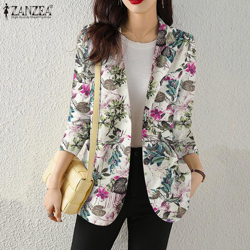 ZANZEA Повседневный кардиган с отложным воротником и длинным рукавом с цветочным принтом, тонкая верхняя одежда