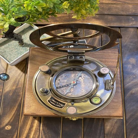 Описание - Красивый компас из латуни с солнечными часами и солнечными часами из деревянной коробки. Указатель направления. Хороший предмет для путешественников и приключений. Путь буксировки. Функциональный компас и солнечные часы.. Латунный компас Лучшее качество