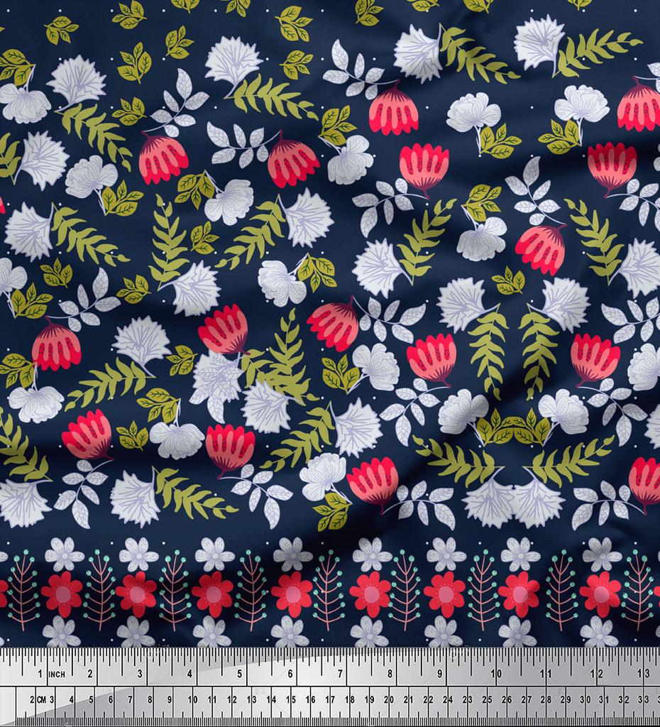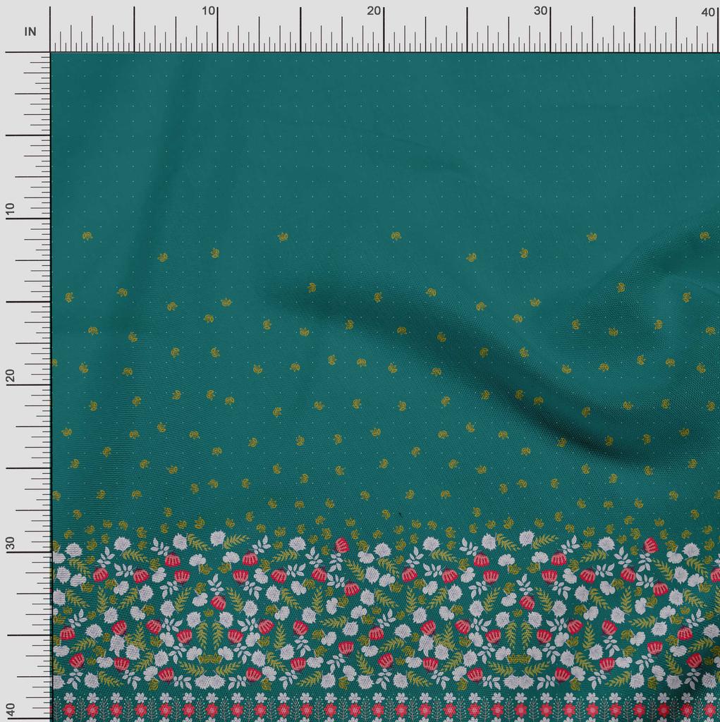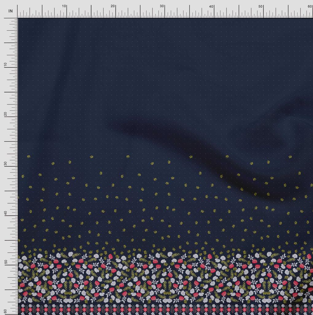 Soimoi Japan Crepe Satin Fabric Dot|Leaves & Floral Panel Print Fabric by metre 42 Inch