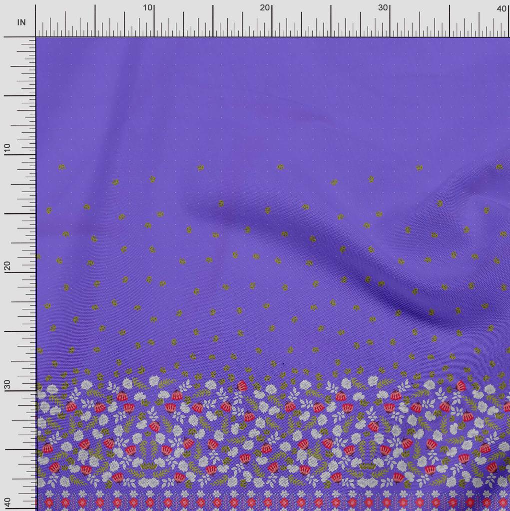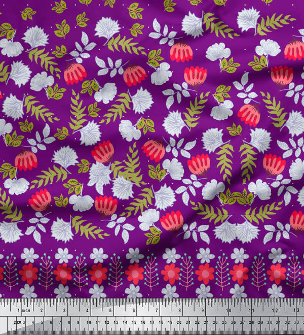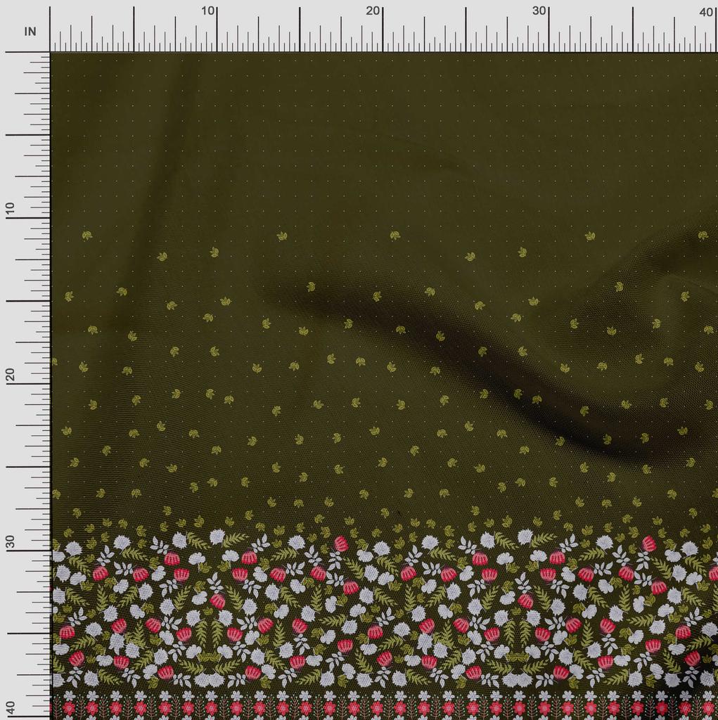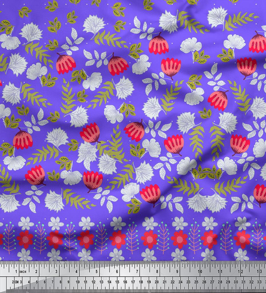 Soimoi Japan Crepe Satin Fabric Dot|Leaves & Floral Panel Print Fabric by metre 42 Inch