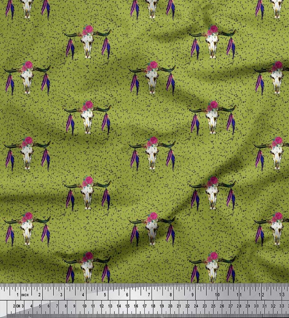 Soimoi Ткань из зеленого японского креп-сатина с принтом в виде перьев и лосей, по метрам, 42 дюйма