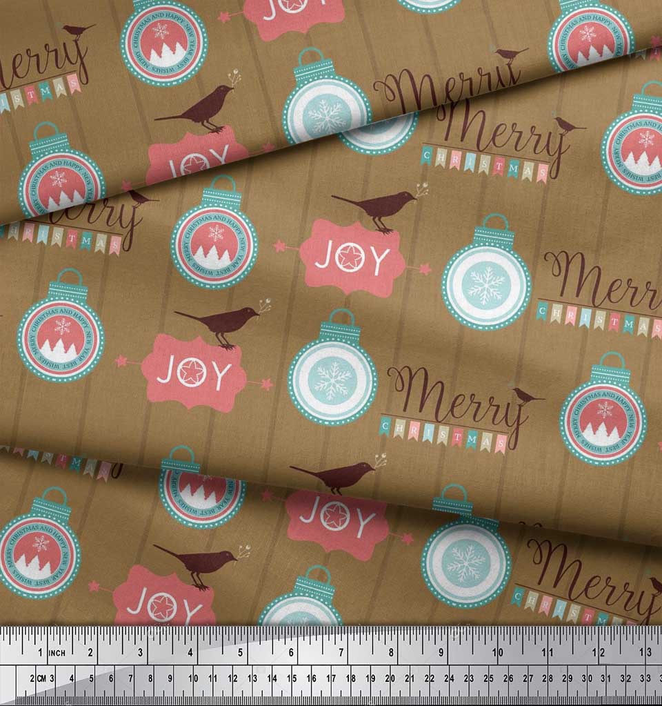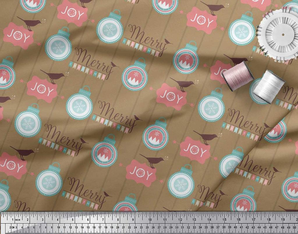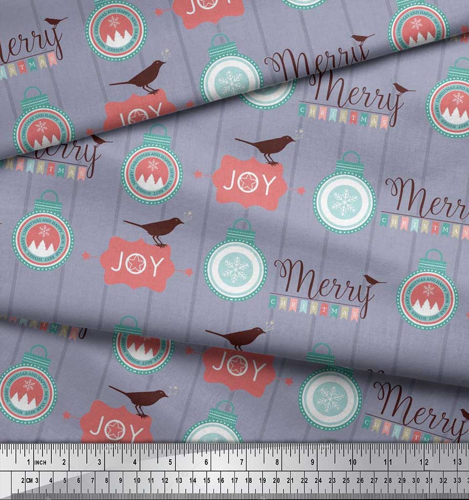 Soimoi Серая японская креп-сатиновая ткань с рождественским принтом в виде птиц, полосок и безделушек, на метры, 42 дюйма