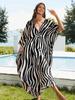 EDOLYNSA сексуальное бикини в полоску с зеброй, повседневное летнее пляжное платье с v-образным вырезом и разрезом по бокам, женская пляжная одежда, купальный костюм, накидка Q1297