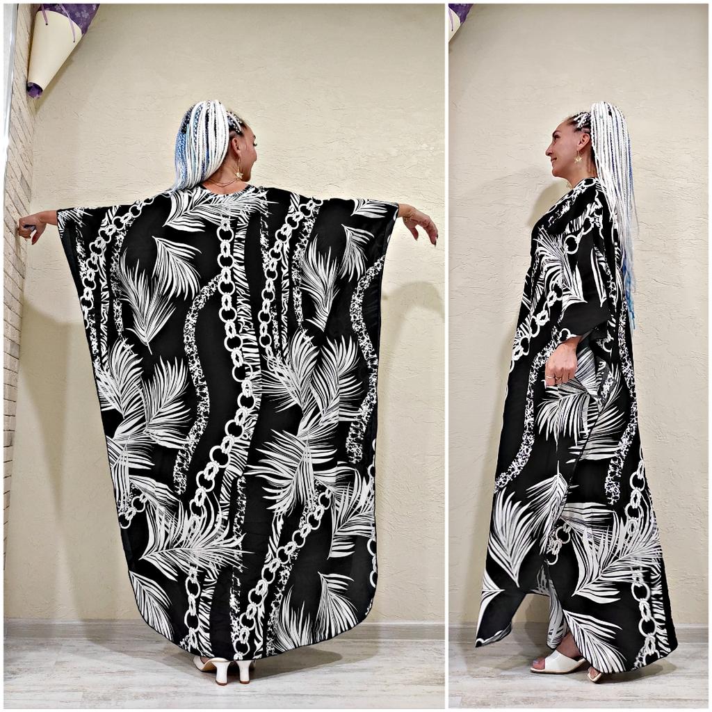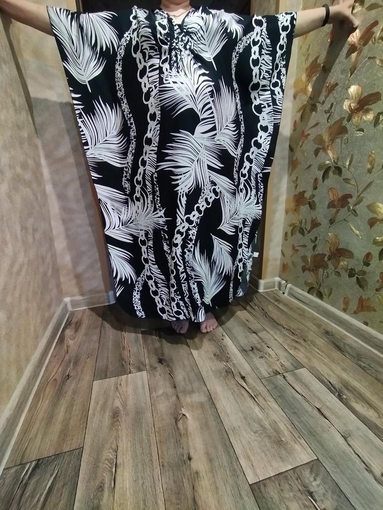 Шикарная пляжная накидка-платье 🖤⛓️🌴🔗🤍 Всем солнечный приветик 👋😉 Очень мне нравится их носить по дому, хоть она и пляжная, вполне и как домашнее удобное платье можно надевать 🥰 Но! Я решила показать свою новую покупку мамуле и она сказала, что это теперь её обновочка: "Спасибо, Лерунчик!" 😅😅😅 И это уже не первая накидка, которую она у меня забирает себе 😁 Так что эта накидка будет не на мне по дому гулять, а ездить в путешествия к морям с мамулей и папулей ☀️🌴🏖️ А я и не против ☺️❤️ Накидка идёт в едином размере. Прекрасно сядет на разные параметры. Мамуля, у меня размера 52/54. Фото пока на ней сделать не могу, потому что они с папой сейчас как раз на море в отпуске 👩❤️👨 Как приедет, обязательно покажу, как на ней села эта накидка в своём телеграмм канале 😉 Я, естественно, утонула в накидке, но она не смотрится на мне некрасиво, а очень даже симпатично ☺️ Мои параметры: 🎗рост 160см 🎗вес 57кг 🎗длина плеч 40см 🎗объём груди 94см (75D) 🎗объём талии 65см 🎗объём бёдер 94см. Мамулины параметры: 🎗рост 157см 🎗вес 78кг 🎗длина плеч 42см 🎗объём груди 114см 🎗объём талии 95см 🎗объём бёдер 114см. Качество: 🖤 ткань 💯% rayon ⛓️ ткань очень схожая с хлопком 🌴 не тянется 🔗 не просвечивает 🤍 мнётся, но из-за объёмного принта это не заметно 🖤 V-образный ворот ⛓️ рукава средней длины и прекрасно скрывают ту часть рук, которую иногда хочется скрыть, показывая изящную часть руки 🌴 по бокам есть средней длины разрезы 🔗 качество пошива отличное. Точные замеры платья-накидки: 📏 ОГ - 124см 📏 ОТ - 124см 📏 ОБ - 124см 📏 длина накидки - 135см 📏 длина рукава от воротника - 55см 📏 объём проймы - 64см. Мамуля и я накидкой довольны очень-очень и рекомендуем её всеми ручками 💕🤗💕 Чмок-чмок-чмок, всех кто со мной на Джуме 56 тысяч раз 😘😘😘😘😘 Желаю удачных покупок 🛍😊 терпения 🤗 и весны в душе 🌈☀️🌱🦋🌼💕🐞🌳🕊 До скорого 🙌😊 Песня во втором видео: Sohodolls "Bang Bang Bang Bang" 🎶💃🎶