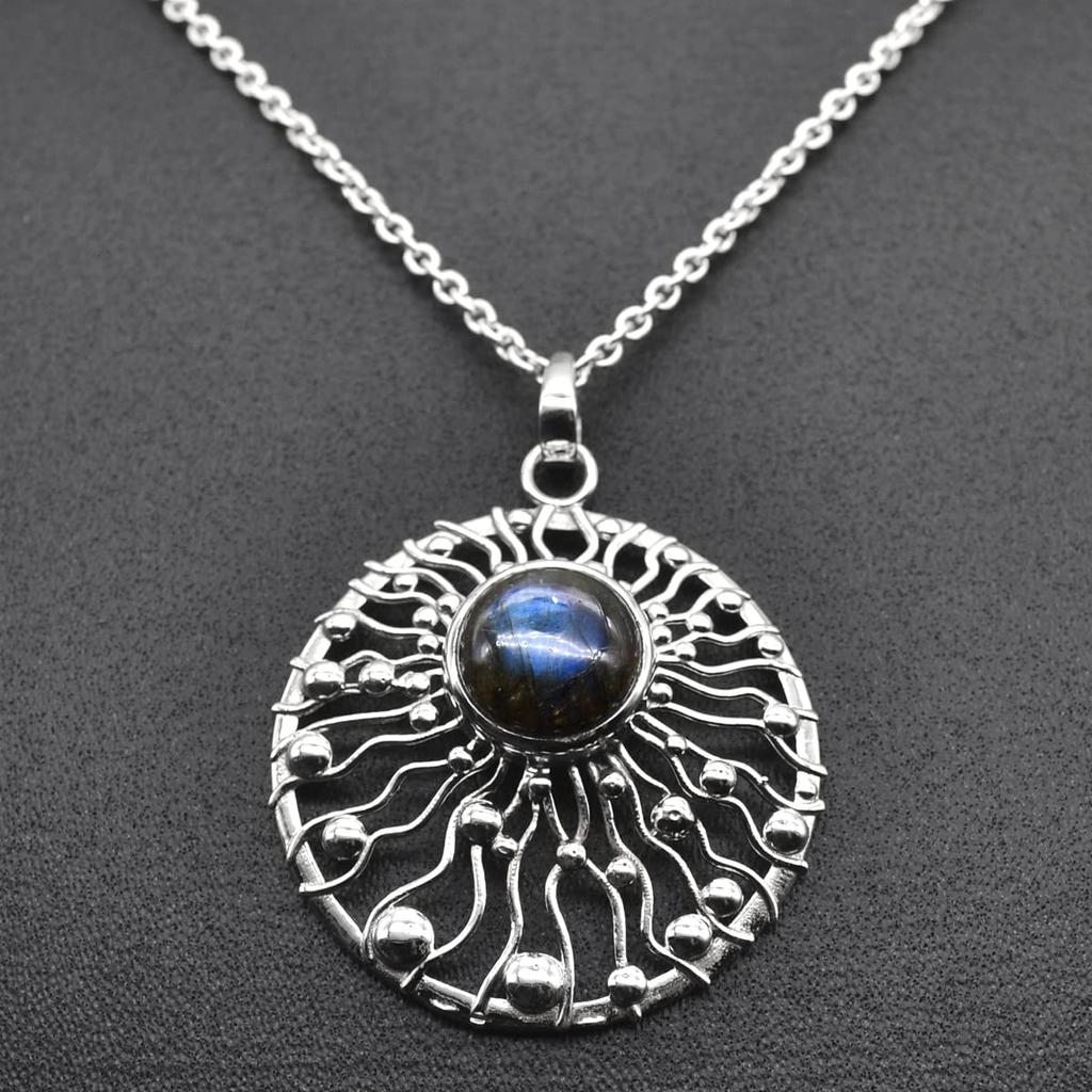 Круглый Кабошон Лабардорит (5 центов) Ожерелье с подвеской Твердая подвеска из стерлингового серебра 925 пробы с цепочкой Ювелирные изделия для женщин или девочек — купить товар онлайн с бесплатной доставкой по всему миру!