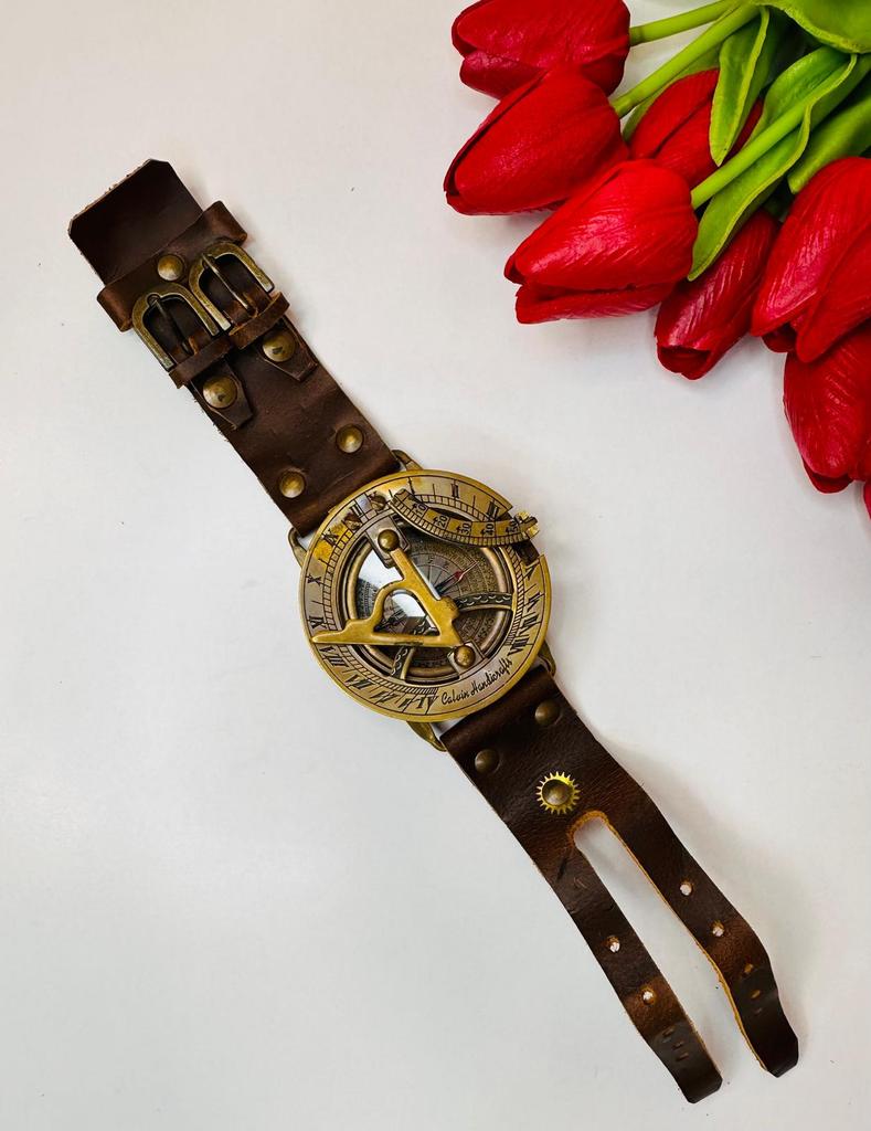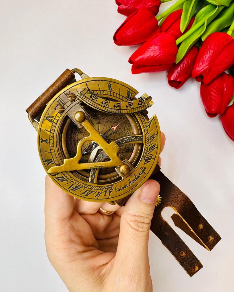 Винтажные наручные солнечные часы с компасом размером 6,35 см, Индия. Прекрасный подарок для любителей морского, морского спорта, пеших прогулок и активного отдыха. Компас и солнечные часы работают. Солнечные часы в стиле стимпанк Наручные часы с компасом и кожаным браслетом Латунь и кожа Размеры Солнечные часы с компасом 6,35 см. Прекрасный подарок для любителей морского, морского спорта, пеших прогулок и активного отдыха.Компас и солнечные часы работают.. Подходит для основных измерений. Компас и солнечные часы работают. Ключевая особенность: 1. Изысканное мастерство: Эти наручные часы органично сочетают в себе эстетику старинного морского компаса с замысловатыми деталями дизайна в стиле стимпанк.. Каждый компонент был изготовлен вручную с точностью и подлинностью. 2. Функциональный компас для солнечных часов: Помимо очаровательного внешнего вида, эти часы служат функциональным компасом для солнечных часов, позволяя вам ориентироваться с оттенком очарования старого мира. Идеально подходит для искателей приключений, исследователей или тех, кто любит уникальные аксессуары. 3. Материалы высшего качества: Часы оснащены прочным кожаным браслетом, который не только придает им винтажный вид, но также обеспечивает долговечность и комфорт. Компас расположен на фоне замысловатых шестеренок и циферблатов, напоминающих о золотом веке исследований. 4. Уникальный коллекционный предмет: Это не просто наручные часы, это произведение искусства, рассказывающее историю. Независимо от того, являетесь ли вы коллекционером морских памятных вещей, поклонником стимпанка или человеком, который ценит сочетание истории и моды, это изделие ручной работы обязательно очарует ваше воображение. 5. Универсальный и стильный: Неподвластный времени дизайн этих наручных часов с компасом делает их универсальным аксессуаром, который дополнит как повседневный, так и формальный наряд.Его деревенский шарм придает изысканность любому наряду и становится темой для разговора, куда бы вы ни пошли. Использование для особых случаев Подарок на выпускной, Подарок на День отца, Подарок для особенного мужчины, Подарок на годовщину, Подарок жениха, Подарок на День святого Валентина, Рождественский подарок, Морской декор, Подарок для кемпинга для мужчины и женщины, Подарок на День продвижения.