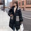 Хлопковый костюм в шахматную клетку на пуху средней длины, черный, свободное зимнее тонкое утолщенное пальто