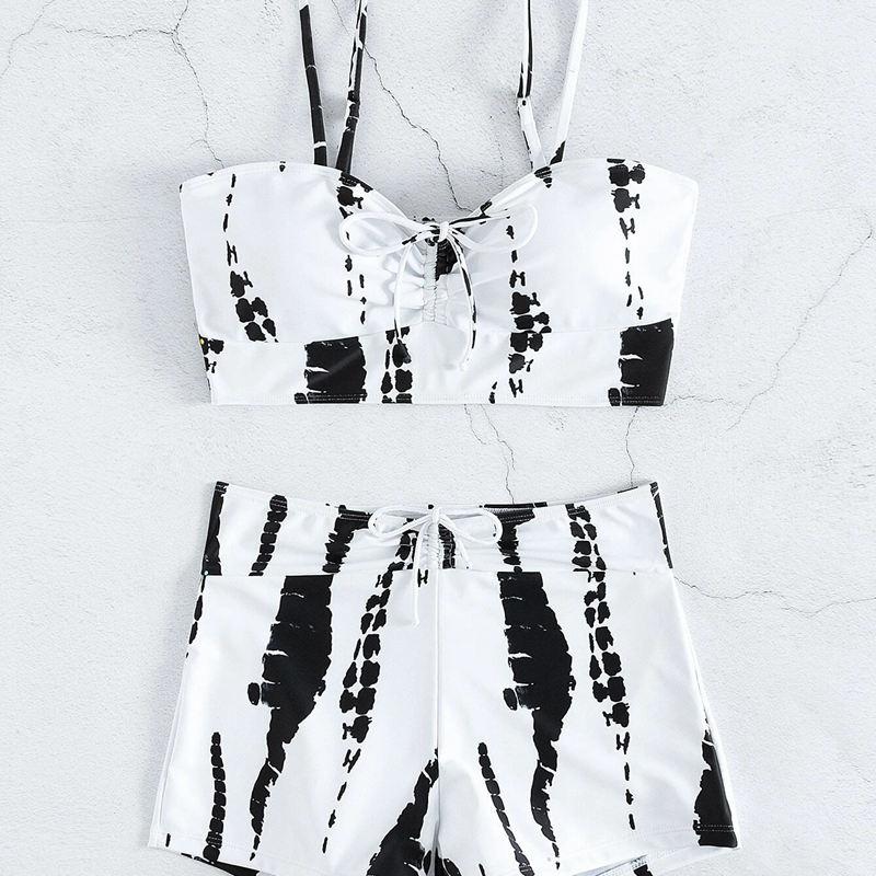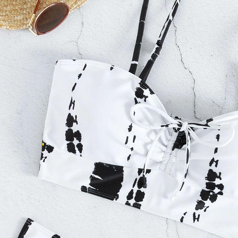 Женский раздельный купальник с высокой талией и плоским углом на шнуровке с принтом, консервативный купальник с лямкой на шее, сексуальные комплекты бикини