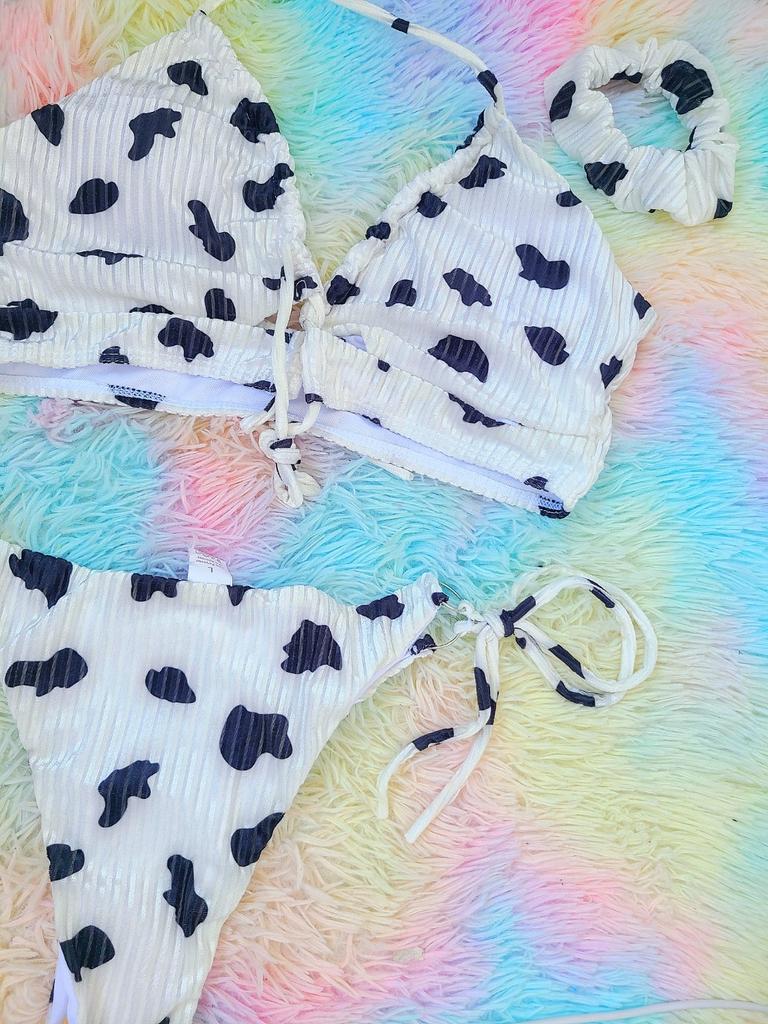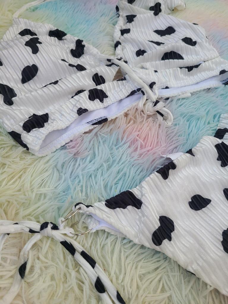 Купальник женский с бретелькой на шее, треугольниками на шнуровке, с принтом коровы, сексуальные комплекты бикини с вырезами
